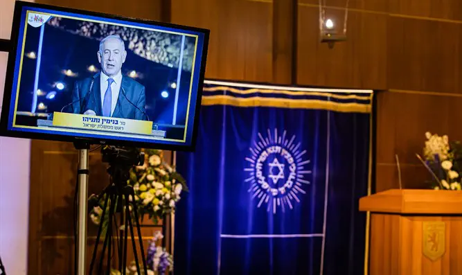 ראש הממשלה בנימין נתניהו שלח נאום מצולם לעצרת לציון יום ירושלים שהתקיימה אמש (חמישי) בישיבת מרכז הרב.