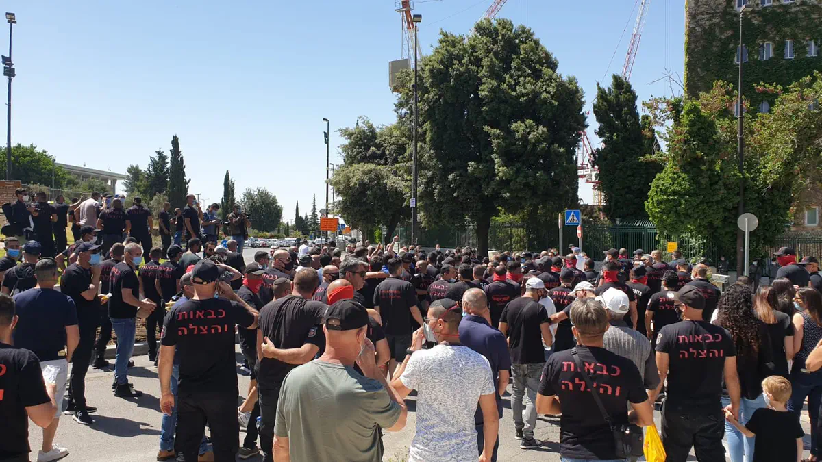 מאות עובדים במערך הכבאות הארצי מקיימים הבוקר (שני) הפגנה סוערת בקרית הממשלה בירושלים במחאה על מה שהם מגדירים "התנהלותה הכוחנית של הנהלת המערך".
