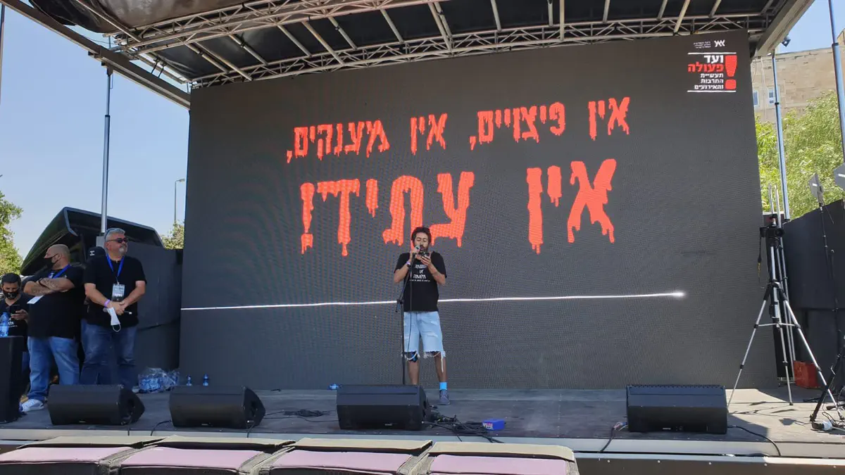מול משרד האוצר בירושלים נערכת בשעה זו מחאת האומנים ועובדי תעשיית התרבות. הם זועמים על אי קבלת סיוע מהמדינה בתקופת הקורונה ועל האיסור לקיים אירועי תרבות תחת מגבלות.