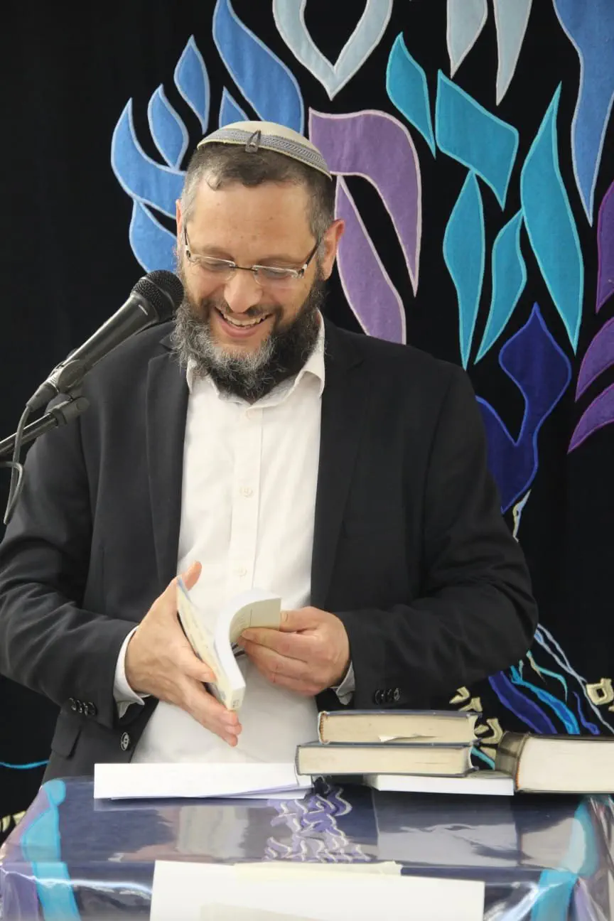הרב פרץ נשא דברים ודיבר על חשיבות לימוד דיני ממונות לצורך חזרה בתשובה ותיקון המידות.