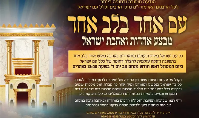 "אנחנו קוראים לכל מי שיכול להצטרף אלינו ולהחיש את הגאולה, לסלק שנאת חינם ולהגביר את אהבת ישראל, להתאחד כעם אחד בלב אחד, כמו שהיינו במעמד הר סיני, ובע"ה נעשה יחד תשובה מאהבה ונזכה לגאולה ברחמים".