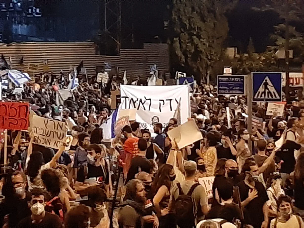 מאות מפגיני שמאל צעדו אמש (שלישי) בירושלים מבית ראש הממשלה ברחוב בלפור לעבר אזור משכן הכנסת.