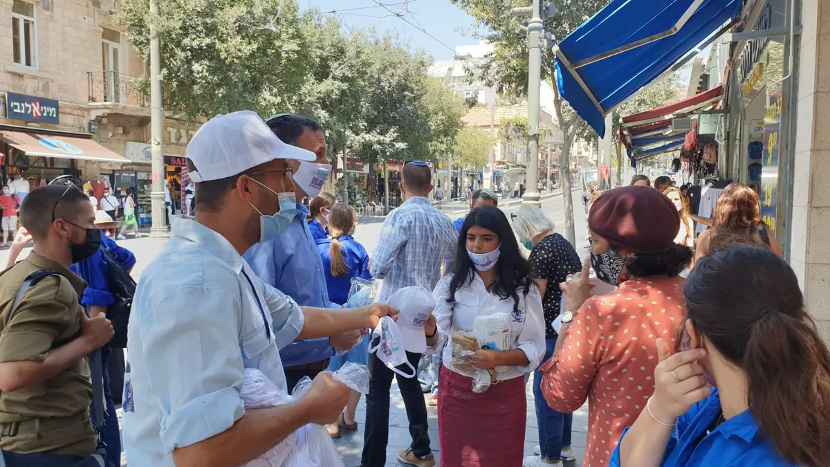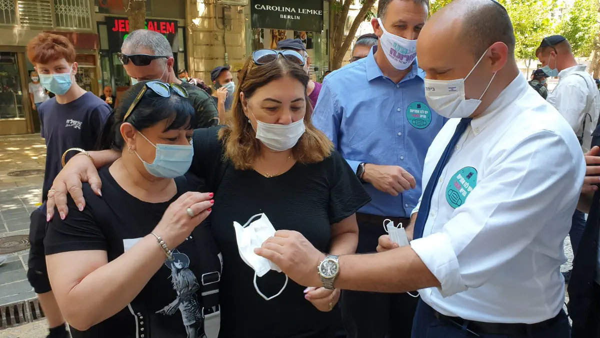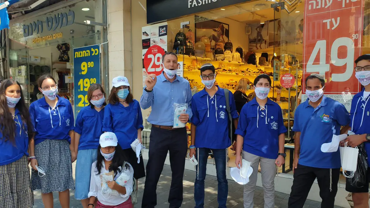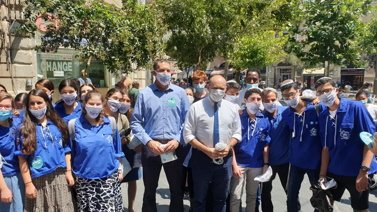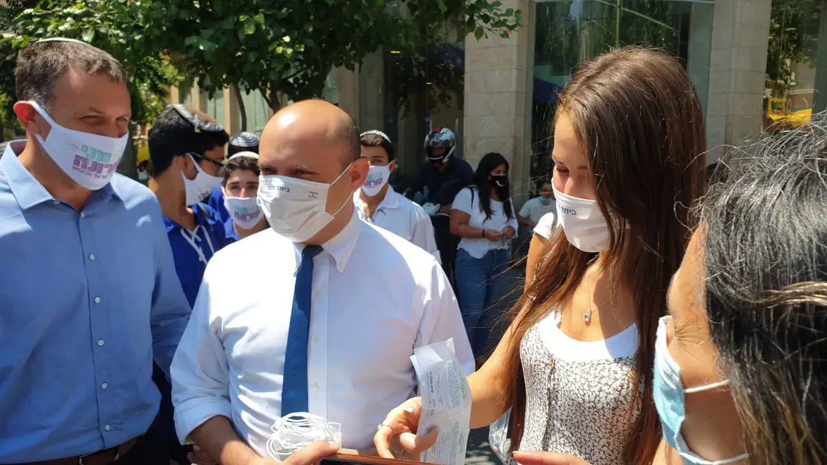 יו"ר ימינה, שר הביטחון לשעבר נפתלי בנט, וח"כ מתן כהנא הגיעו היום (רביעי) למרכז העיר ירושלים יחד עם מזכ"לי תנועות הנוער של הציונות הדתית - בני עקיבא, עזרא, אריאל ועוז, לחלוקת מסכות לעוברים ושבים יחד עם חניכי התנועות.