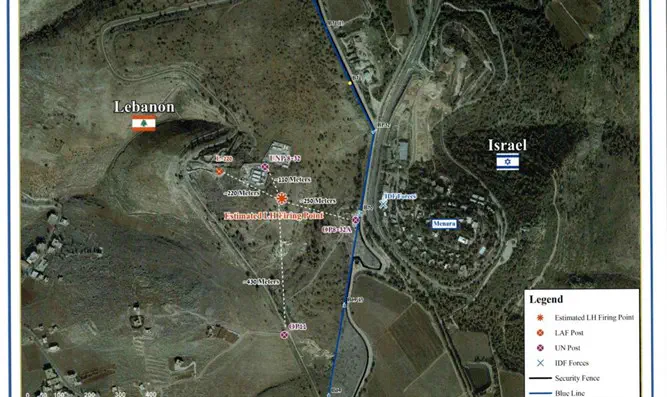 ארדן צירף לתלונה צילום אוויר של האזור ממנו בוצע ניסיון הפיגוע של חיזבאללה הנמצא בין שתי עמדות של כוח יוניפי"ל ובסמוך לקו הכחול.