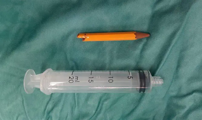 ד"ר עידו ולניץ החליט בו במקום לשלוח את הילד לצילום רנטגן נוסף, בו נמצא כי חפץ זר, עיפרון באורך 7 סנטימטרים, חדר לרגל באזור הברך הימנית.