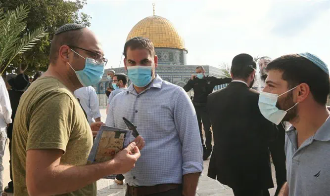 בהר הבית התקבלו העולים על ידי יו"ר מטה ארגוני המקדש, הרב שמשון אלבוים, שהדריך אותם על גבולות הקדושות השונות בהר הבית.