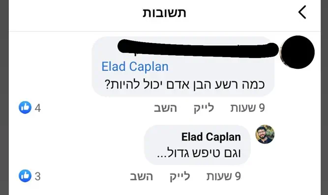 לאחר מכן, בפוסט באותו נושא בפייסבוק, תוייג עו"ד קפלן על ידי כותב הפוסט ונשאל לגבי הרב אליהו "כמה רשע הבן אדם יכול להיות?". קפלן, מנהל 'עתים, ענה לו כאמור: "וגם טיפש גדול".