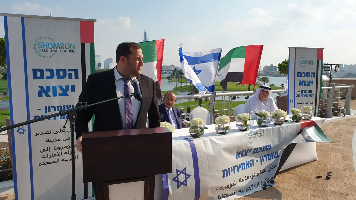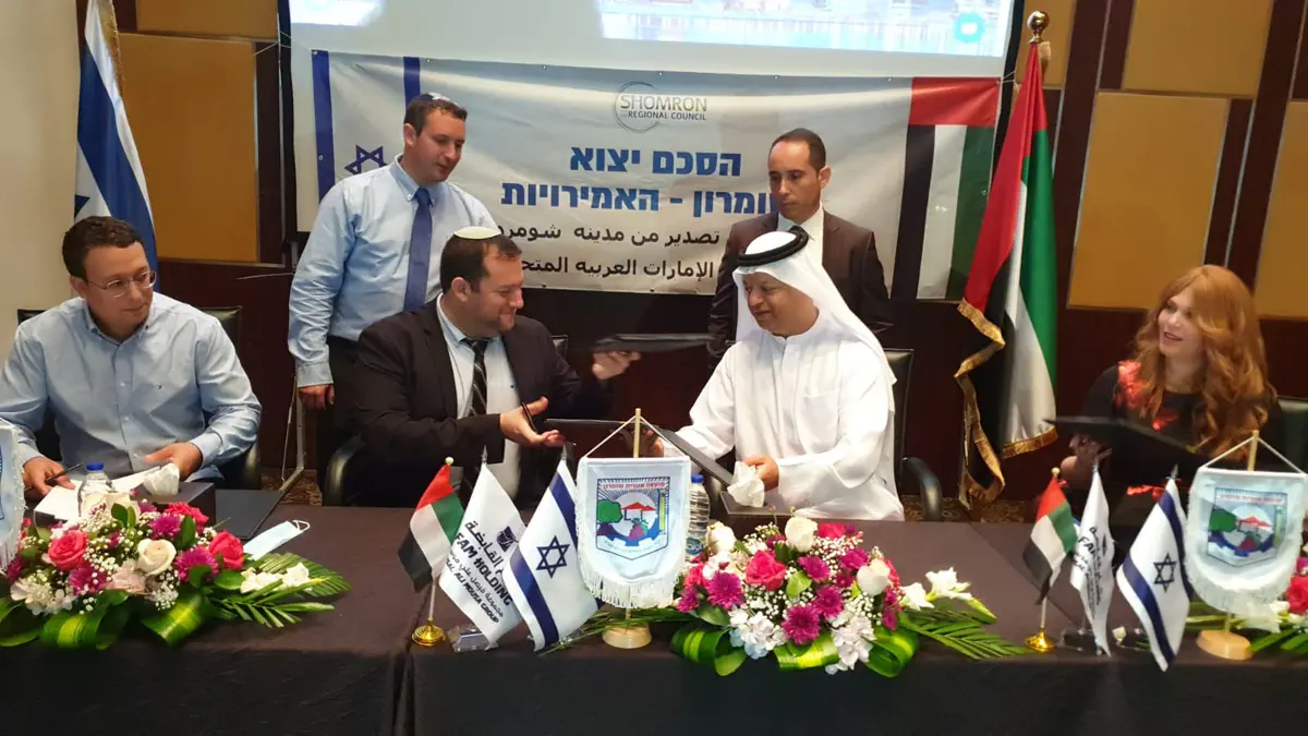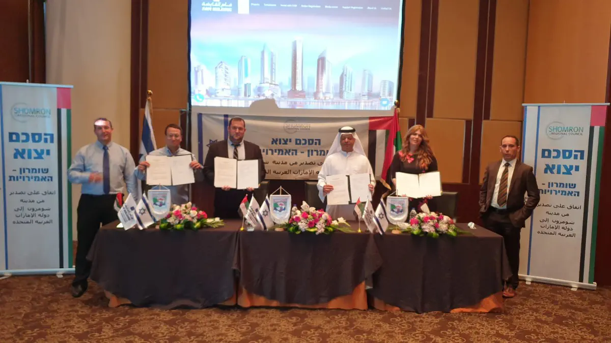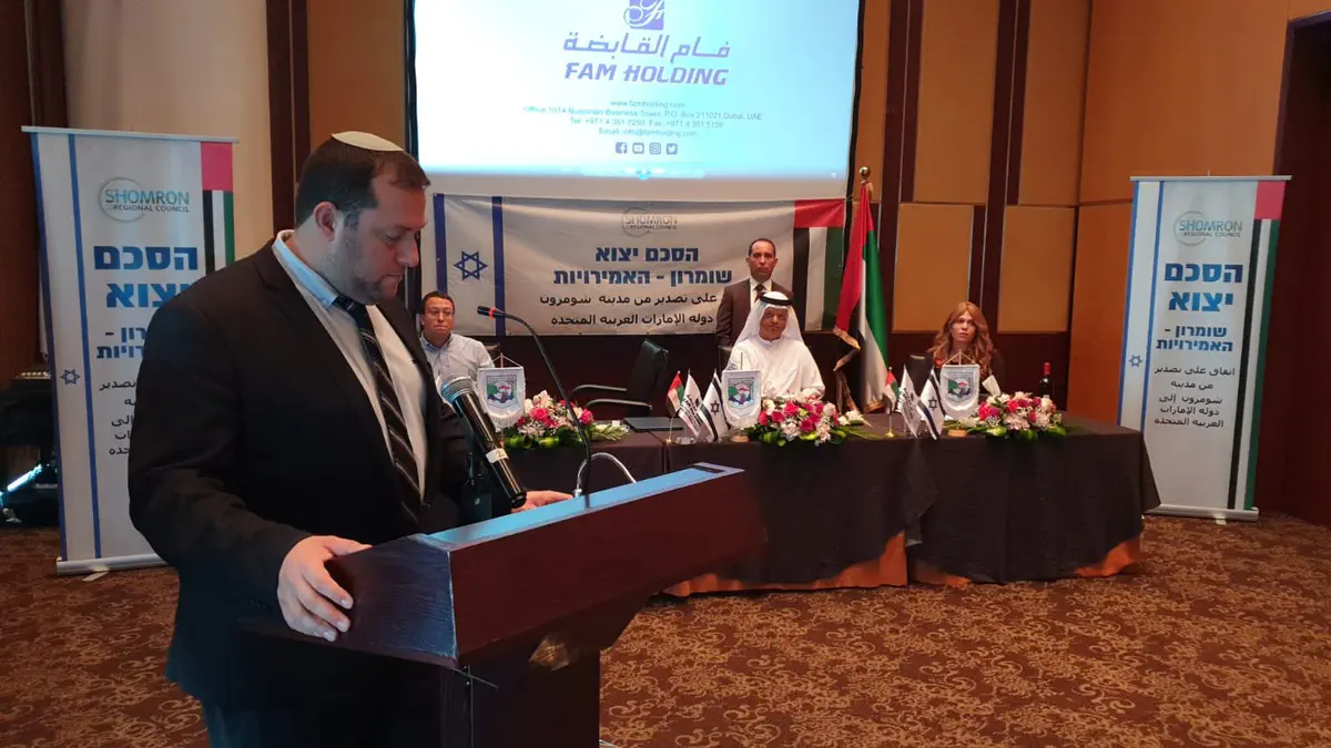הגענו לרגע היסטורי של חתימה על הסכמים עם חברות מובילות כאן באיחוד האמירויות ליצוא ישיר מהשומרון לאמירויות של תוצרת מהשומרון לכאן ישירות.