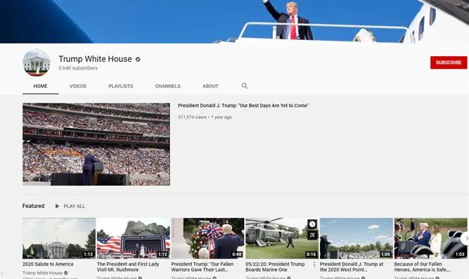 הערוץ מכיל את כל הסרטונים והשידורים מתקופת ממשל טראמפ.