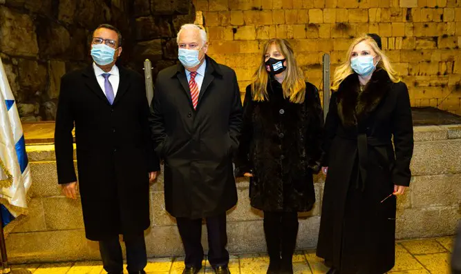 שגריר ארה"ב בישראל דיויד פרידמן ורעייתו תמי פרידמן, ראש העיר ירושלים, משה ליאון ורעייתו סתוית, הרב שמואל רבינוביץ ומנכ"ל הקרן למורשת הכותל, מרדכי (סולי) אליאב, הגיעו הערב לרחבת הכותל לציון סיום כהונתו של השגריר פרידמן בישראל.