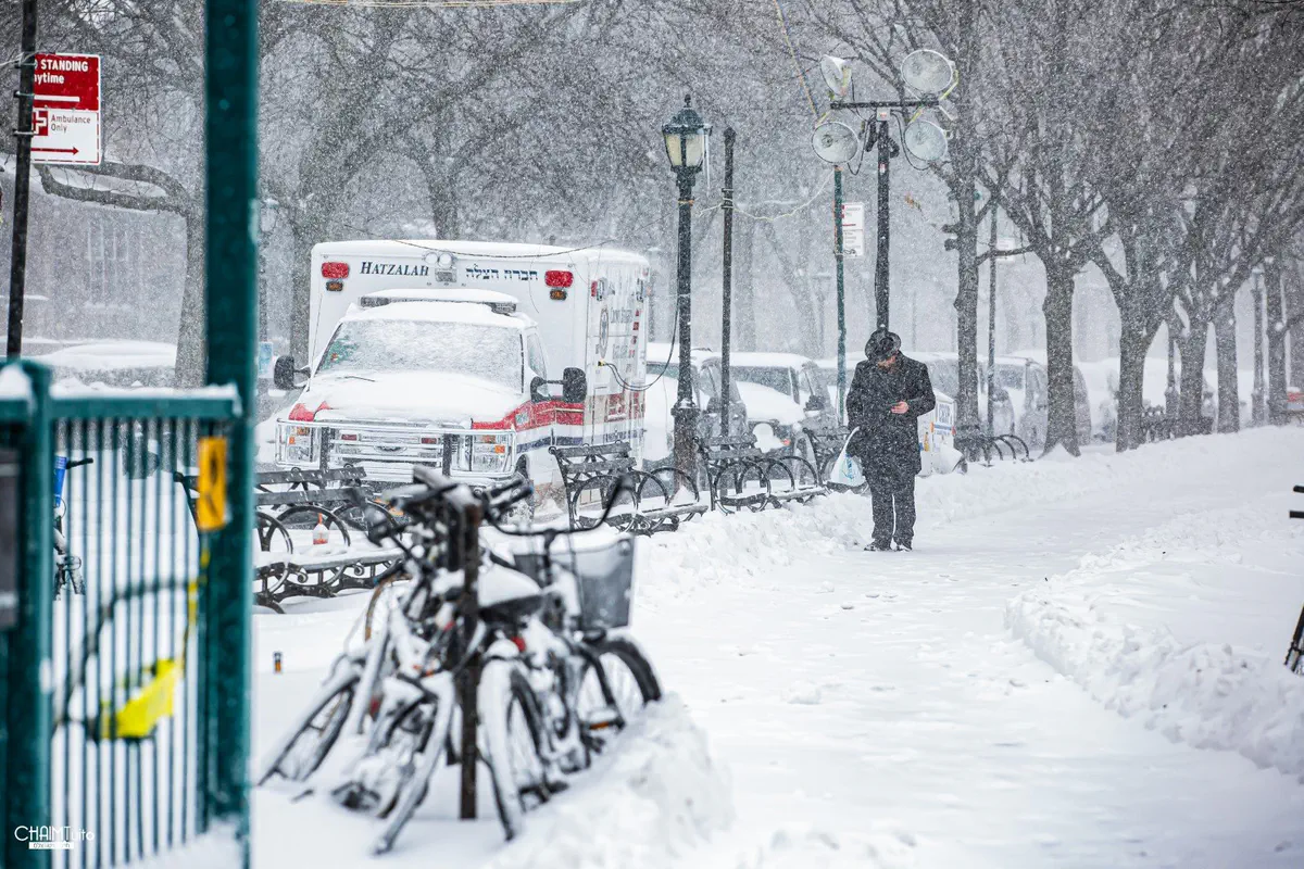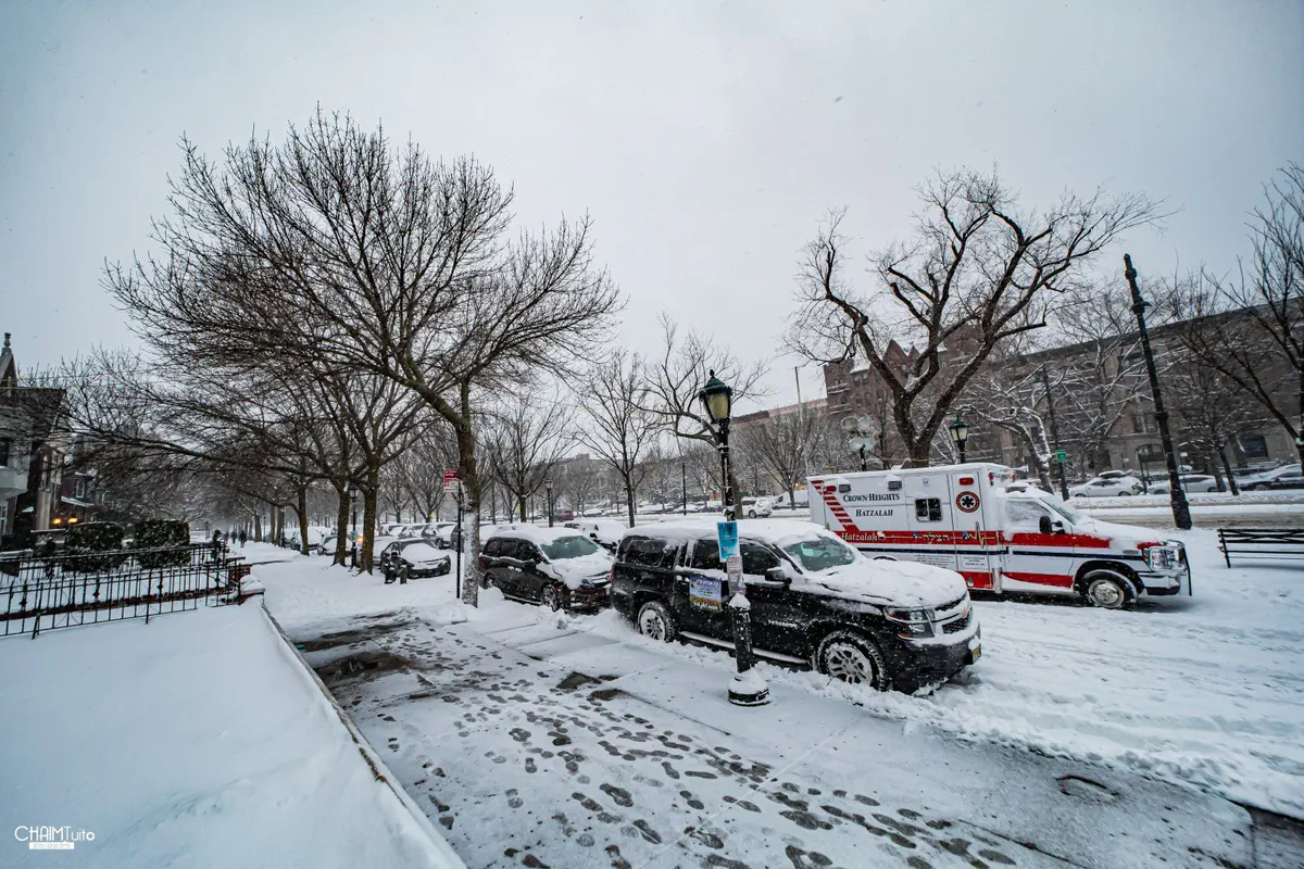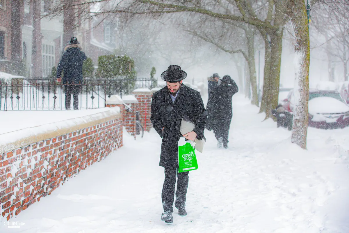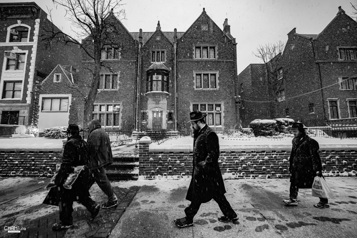 אמן הצילום החב"די חיים טויטו תיעד את רחובות שכונת קראון הייטס מכוסים בלבן והוא מגיש תיעוד מרהיב ומושלג.