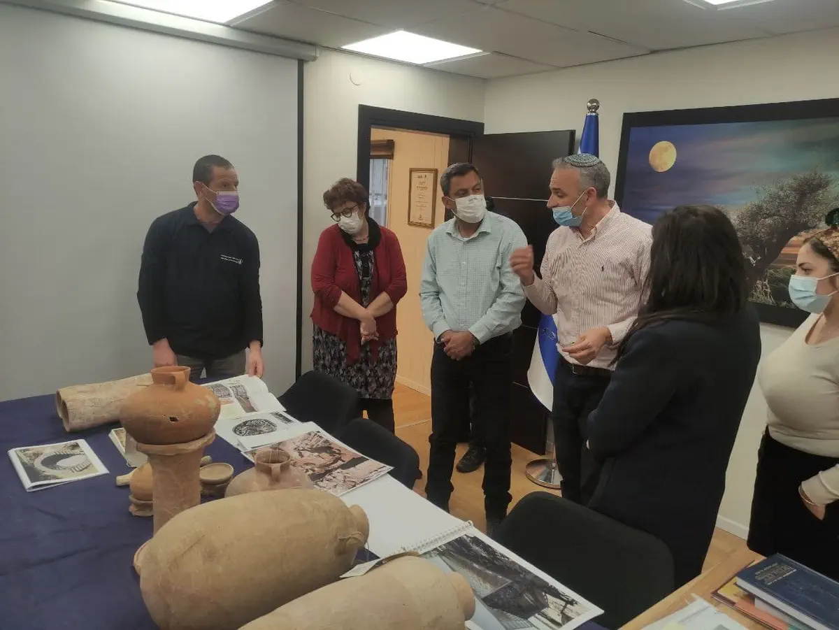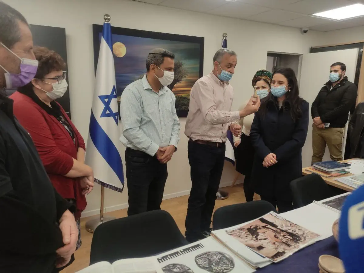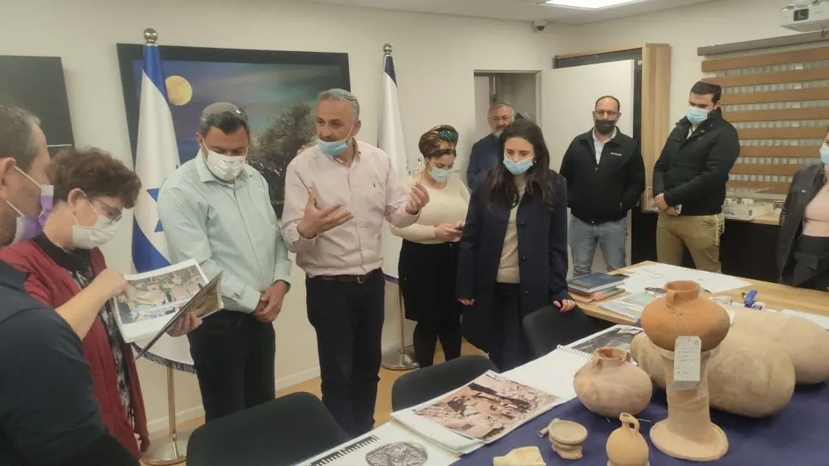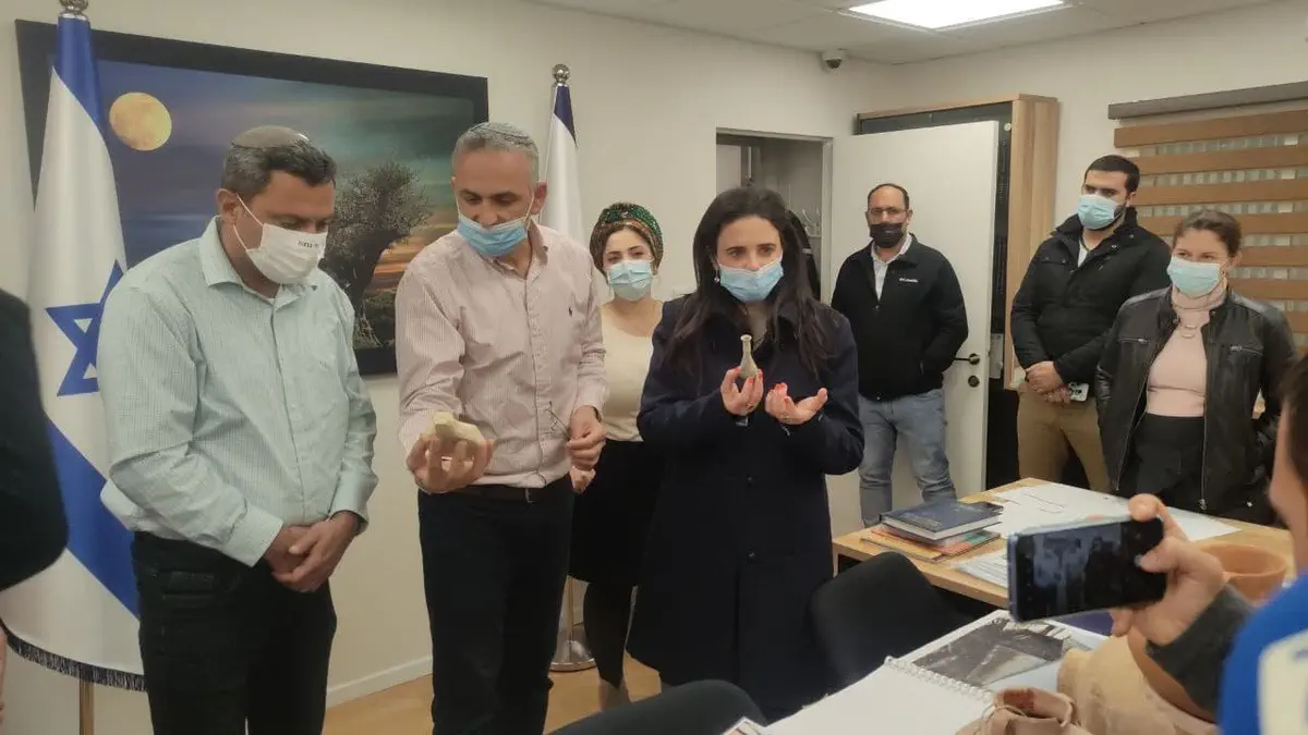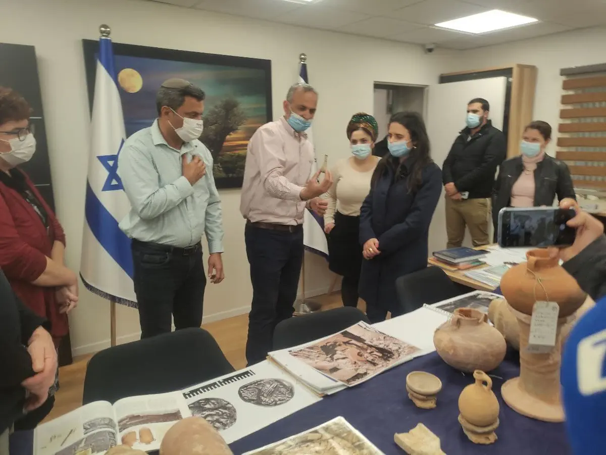 במהלך הביקור טעמו שקד ודוידי יין מיקבי בית אל וצפו בממצאים מהחפירות הארכיאולוגיות ביישוב.