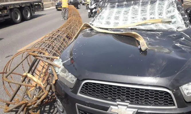 חובש רפואת חירום רכוב על אופנוע מד"א איתן גברא סיפר: "מדובר ממש בנס. הרכב שחלף בכביש המהיר נפגע מגליל מתכת גדול שנפל ממנוף ופגע בחלקו הקדמי. הנהג שנפצע בגפיים התהלך במקום כשהוא בהכרה. ביצענו בדיקות רפואיות ופינינו אותו לבית החולים כשמצבו יציב".