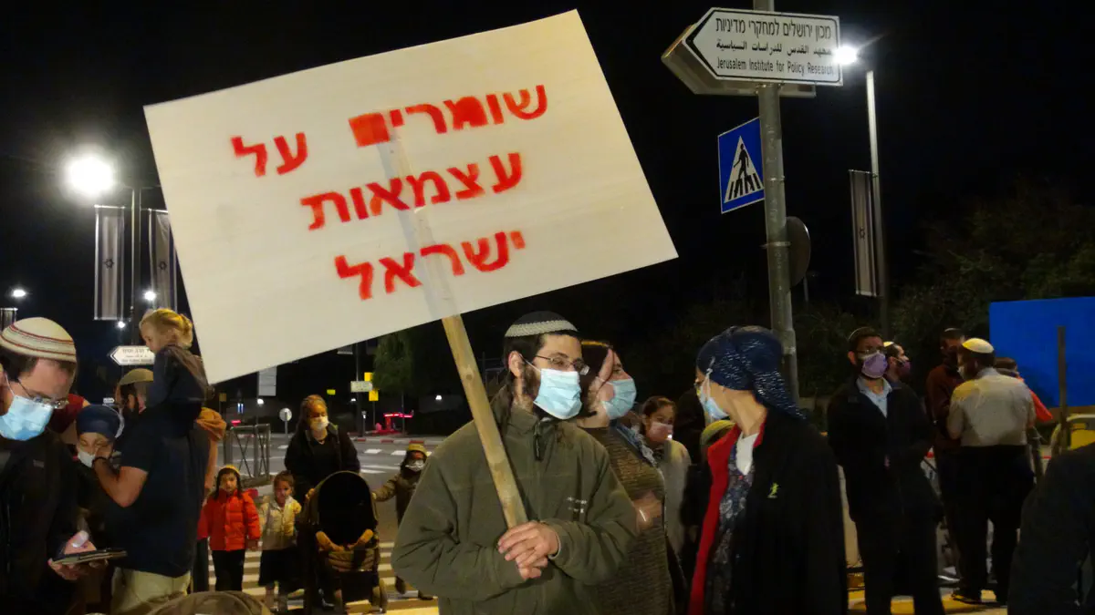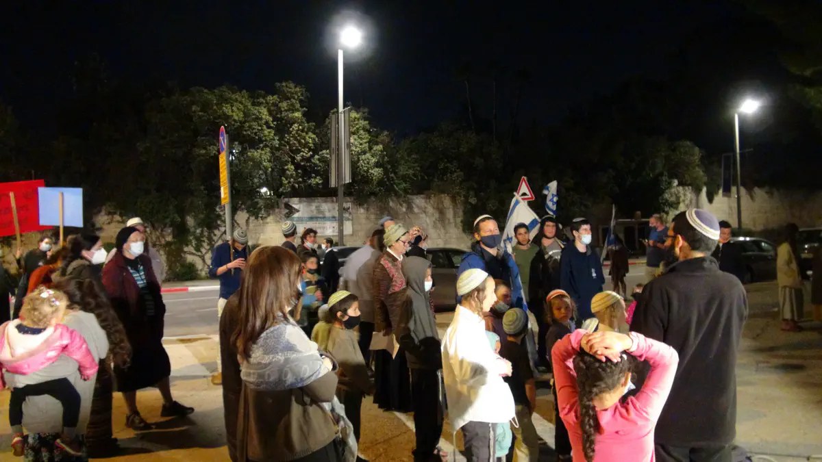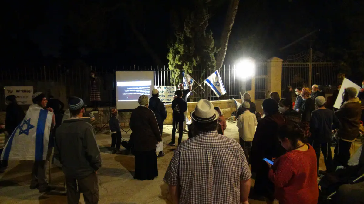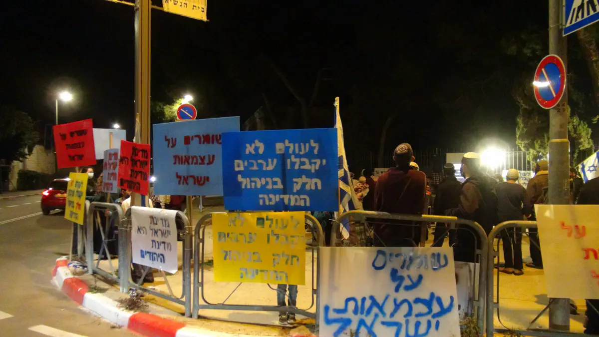 עשרות פעילי ימין הפגינו הערב (ראשון) מול ביתו של נשיא המדינה בקריאה לחברי הכנסת לא להקים ממשלה הנשענת על מפלגה ערבית.