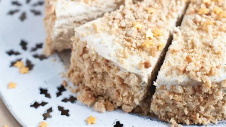 מפזרים את הפירורים מעל העוגה ושומרים במקרר