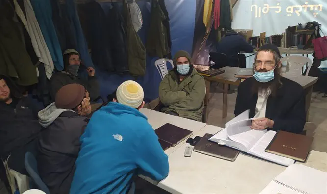 בית המדרש של הישיבה הוא מבנה ארעי בעל עמודי עץ ויריעות פלסטיק שמונעות מהגשם לחדור אך לא מהקור. היום בו סיירה בישיבה מפלגת 'הציונות הדתית' היה יום חורפי וקר, והתלמידים התחממו בעזרת הסקה מאולתרת.