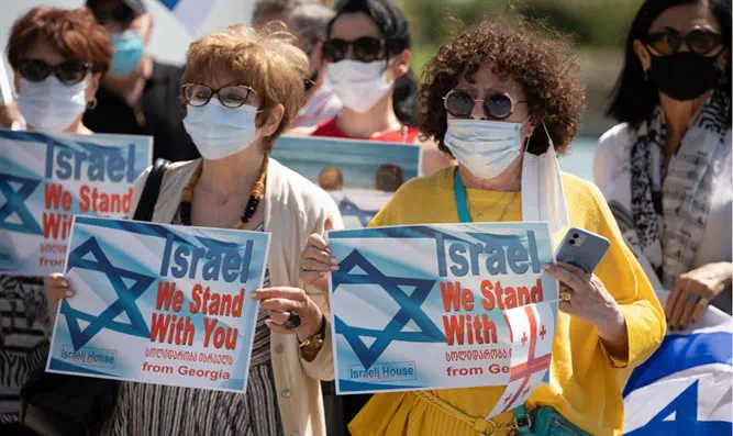 אזרחי גאורגיה הפגינו היום (ראשון) בבירת המדינה טבילסי ובעיר בטומי והביעו תמיכה במדינת ישראל החווה מתקפות טילים מצד ארגון החמאס ברצועת עזה.