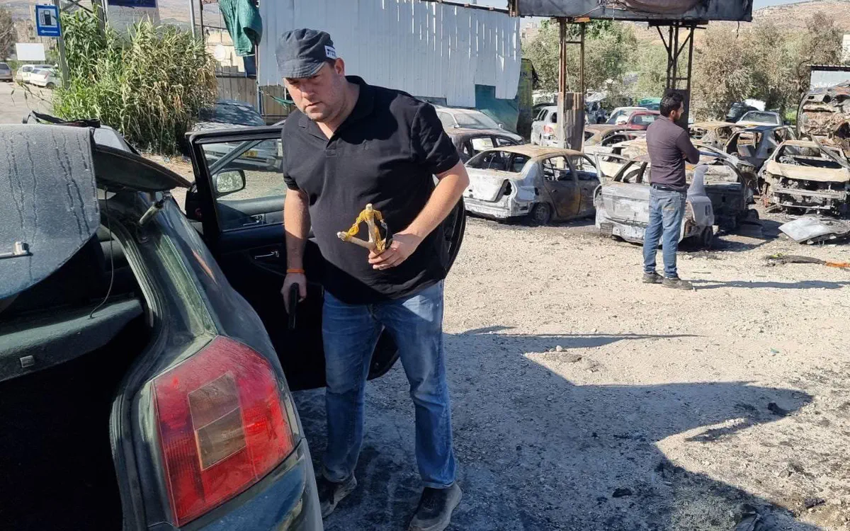 ראש המועצה האזורית שומרון יוסי דגן לכד חוליית פלסטינים זורקי אבנים בכיכר במרכז חווארה, בזמן שהיה בדרכו ליצהר, לשריפה שהציתו ערבים מבורין לכיוון יצהר.
