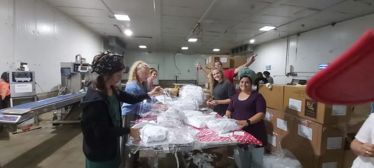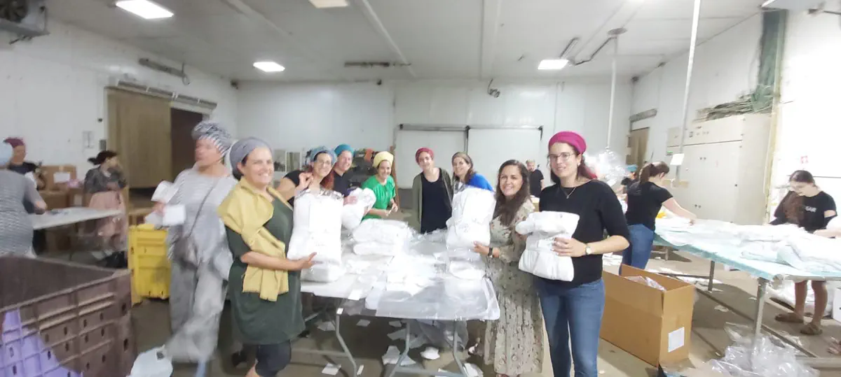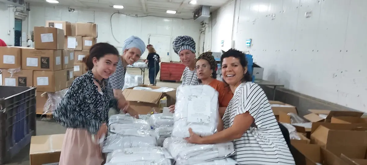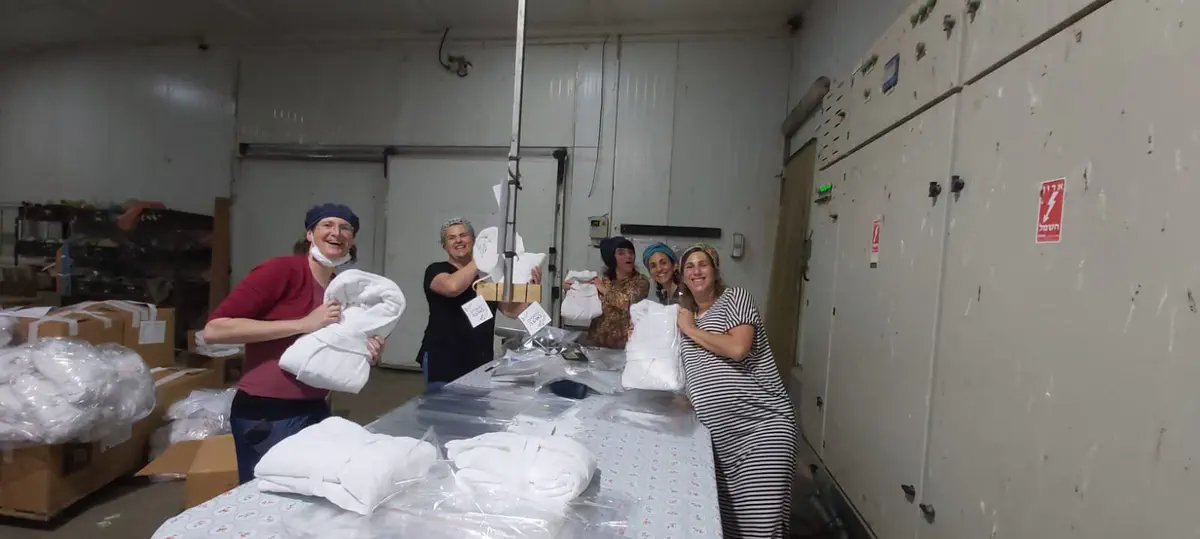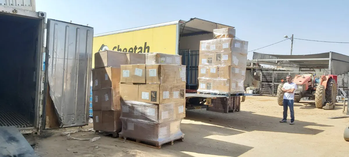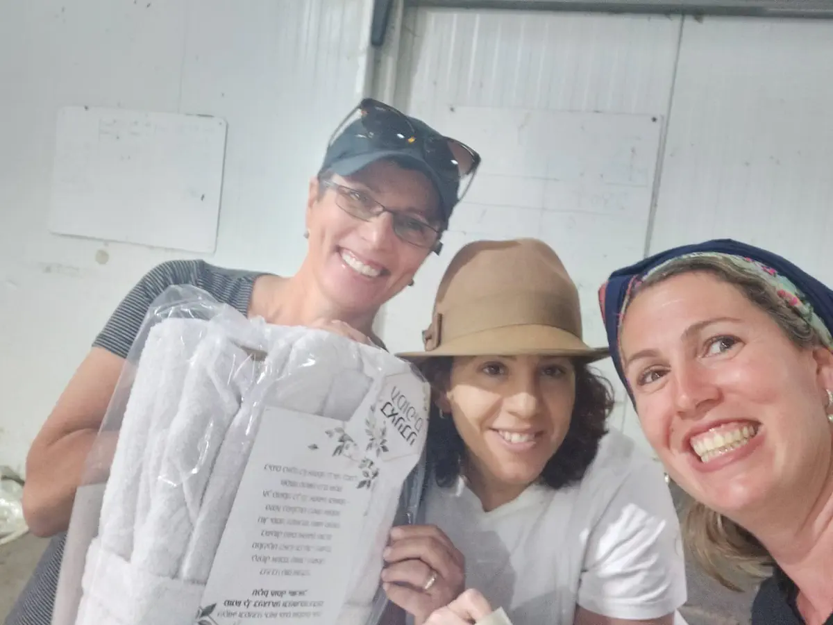 בית האריזה החקלאי של עוז ואסנת לברן מסנסנה סייע באריזת חלוקי המגבת ובהובלתם לעוטף עזה במשאית במקום שיירת ארוכה של רכבים פרטיים.