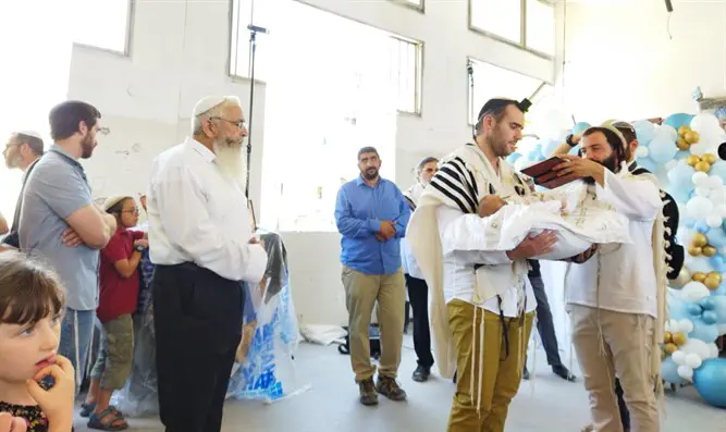 בדמייך חיי: ברית מרגשת במיוחד נערכה היום (שלישי) במבנה המכינה הקדם צבאית "מעוז" בלוד, שנשרפה בשבועות האחרונים בידי פורעים ערבים.