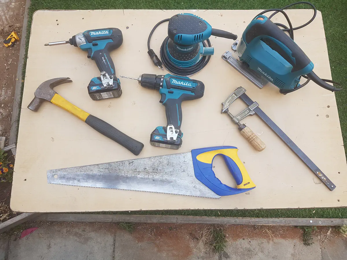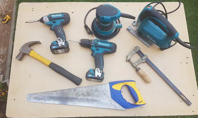 מברגה, מקדח בקוטר 4 מ"מ, ביט להברגה, מטר, עיפרון, פטיש 300–500 גרם (לעבודה עם משטחים עדיף פטיש טפסנים עם חולץ מסמרים), צבת, מסור ידני איכותי גדול בעל שיניים די גדולות. מנסר במהירות! מלטשת (לחיים קלים), ולעבודה עם משטחים קחו כפפות עבודה (או פינצטה).