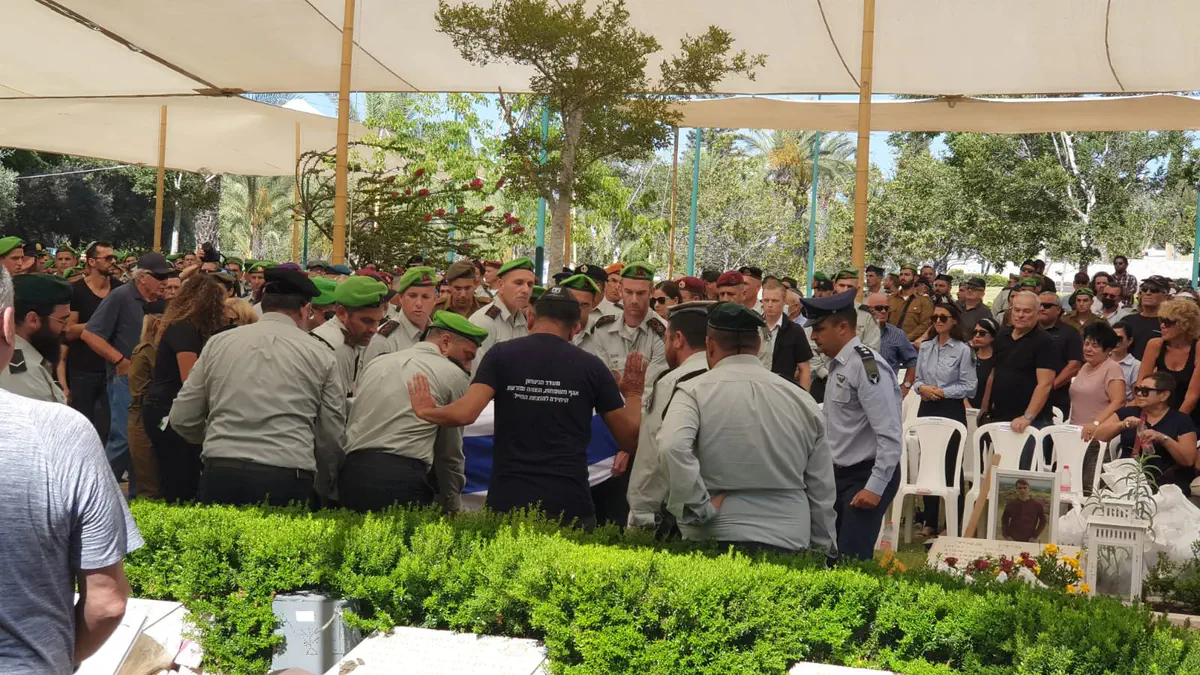 אלוף-משנה שרון אסמן, מפקד חטיבת הנח"ל שהתמוטט ונפטר בשבוע שעבר במהלך אימון גופני, הובא למנוחות (ראשון) בבית העלמין הצבאי בקריית שאול.