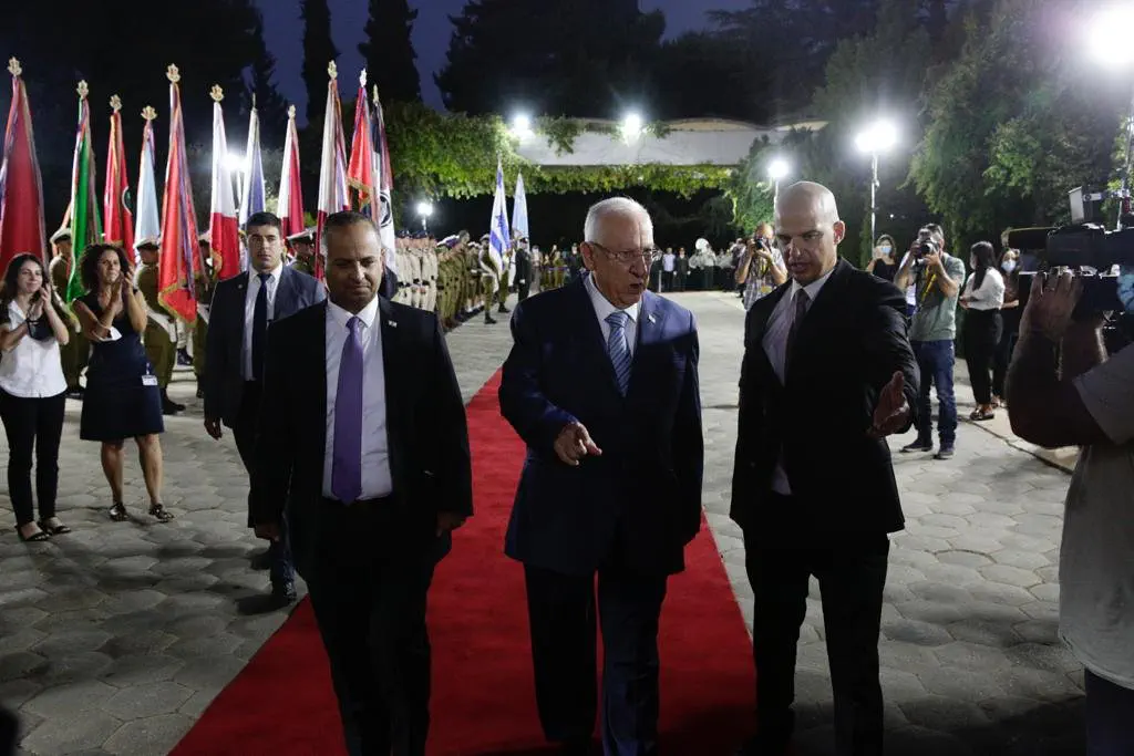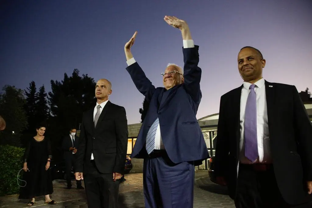לפניו נשא דברים נשיא המדינה היוצא ראובן ריבלין בהם סיכם את כהונתו. "שבע שנים הן הרבה זמן ובפרט, שבע השנים האחרונות, שאפשר לקפל לתוכן היסטוריה שלמה. בתחילת כהונתי, נשאתי נאום, שזכה לשם "נאום השבטים". הוא זכה לשמו, בשל חלקו הראשון, בו שיקפתי את המציאות הדמוגרפית והתרבותית המשתנה בה אנו חיים. ואולם, אילו היו קוראים לנאום על שם חלקו השני, הרי שהנאום הזה היה זוכה לשם, "נאום השותפות", או נאום התקווה – התקווה הישראלית. שכן, בחלקו השני של הנאום, ביקשתי להציע יסודות פרגמטיים לשותפות, במדינה היהודית והדמוקרטית.