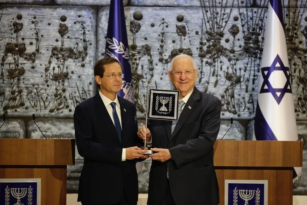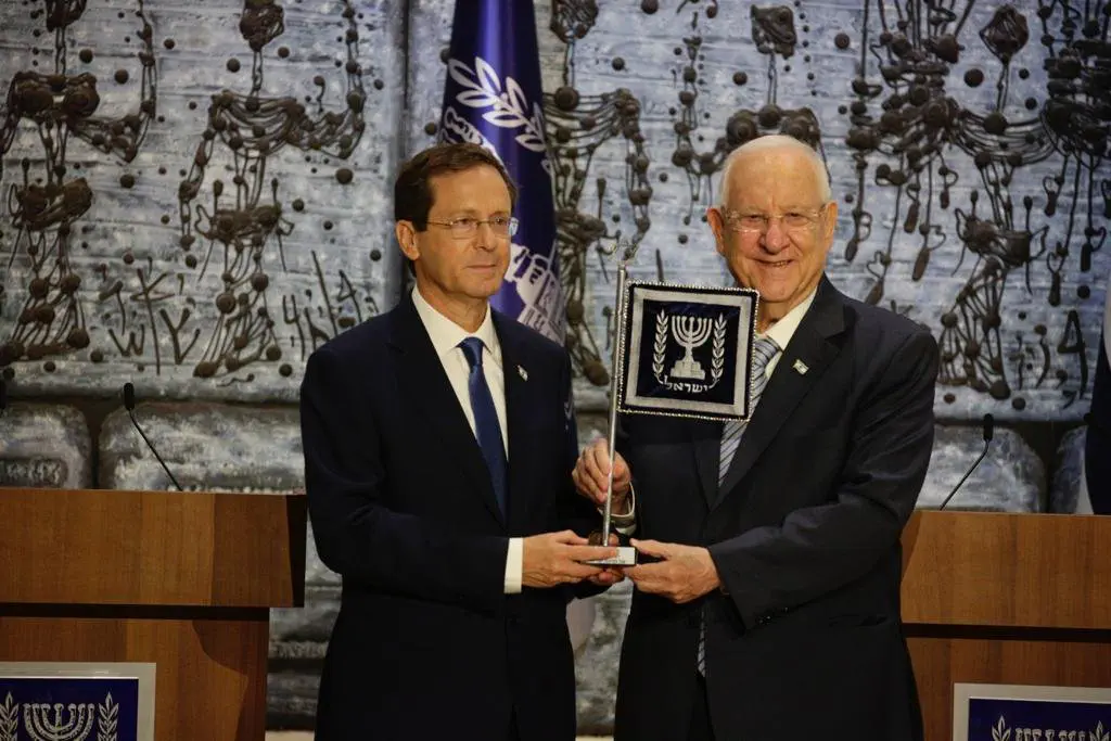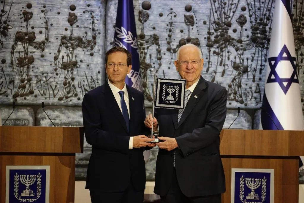 "הרבה מהיוזמות שלך שהמשיכו את המורשת של הענקים, שנבנה עליהם המוסד הזה אני אהיה גאה להמשיך, נס הנשיא הוא מנורה עם שבעה קנים, ואמר הרב יונתן זקס שהדבר המדהים שדווקא מחזיק את כל העם זה דווקא מלמטה, העמוד האחד. ואני חושב, והוא אומר שמה שמחזיק זה דווקא המנהיגות, היא כפופה לעם ומסתכלת למעלה כלפי העם. מה שקורה בבית הנשיא זה בדיוק זה, אנחנו משרתים את כל העם, מאירים אור גדול לעם נותנים לו מזור וחיזוק ברגעים חשובים מאד של האומה ומייצגים אותם", סיכם הרצוג.