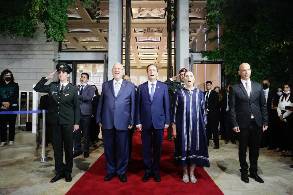 הרצוג התקבל במסדר כבוד שכלל שלוש תרועות של חצוצרות. את פניו קיבל הנשיא היוצא ראובן ריבלין שהוביל אותו לאולם קבלת הפנים הרשמי של בית הנשיא.