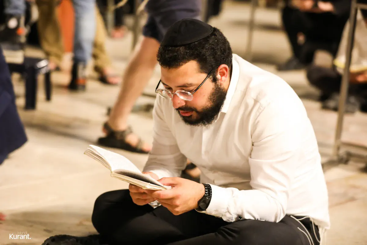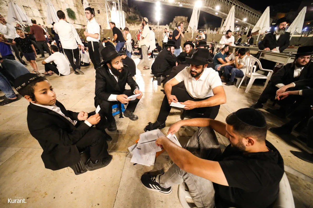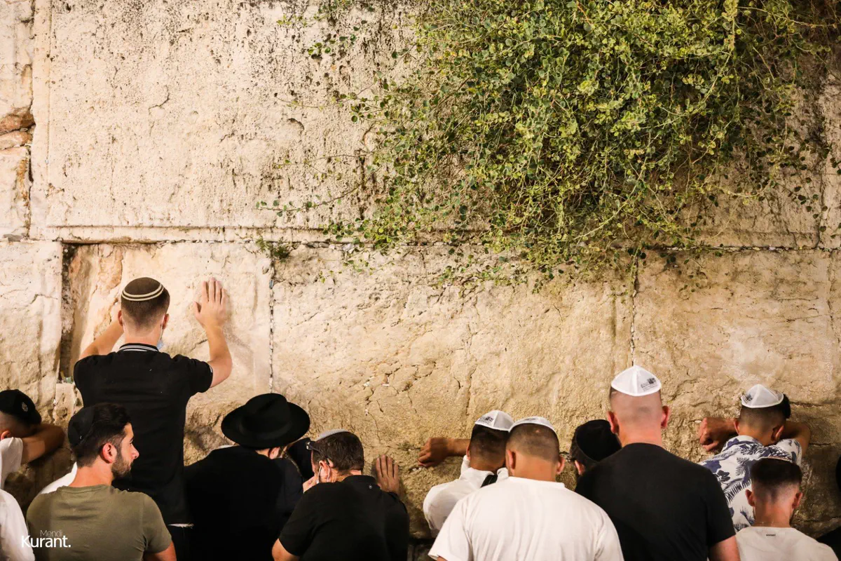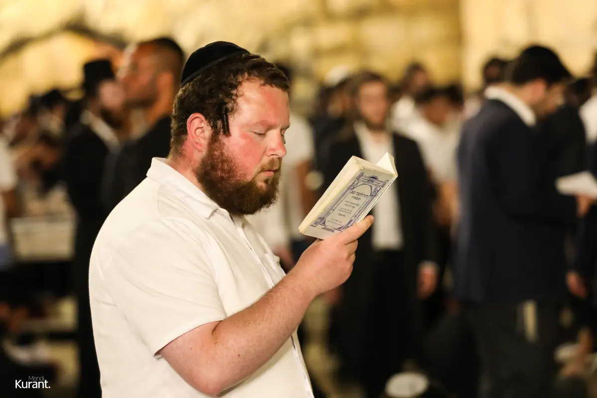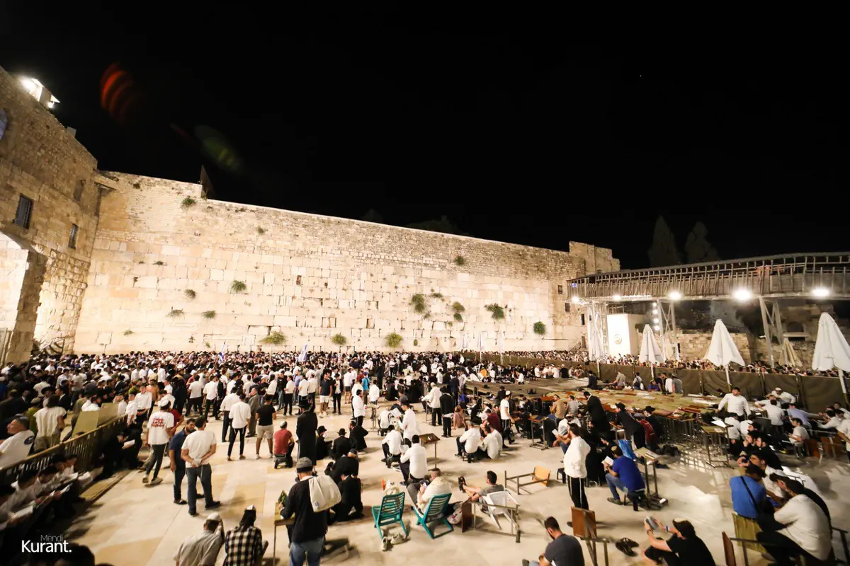 אלפי אנשים מכל רחבי הארץ הגיעו אמש לכותל המערבי לאמירת מגילת איכה וקינות. הצלם החב"די מענדי קורנט מגיש 50 רגעים מליל תשעה באב: