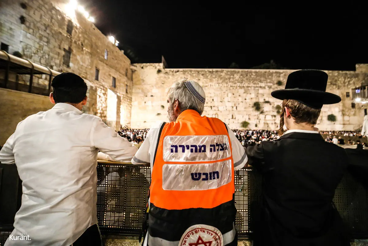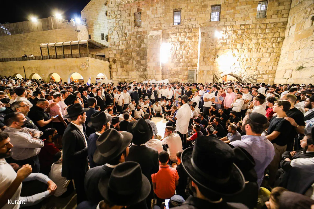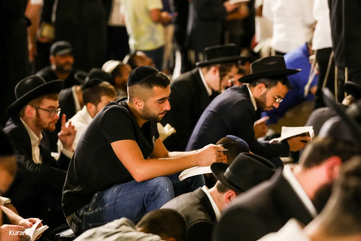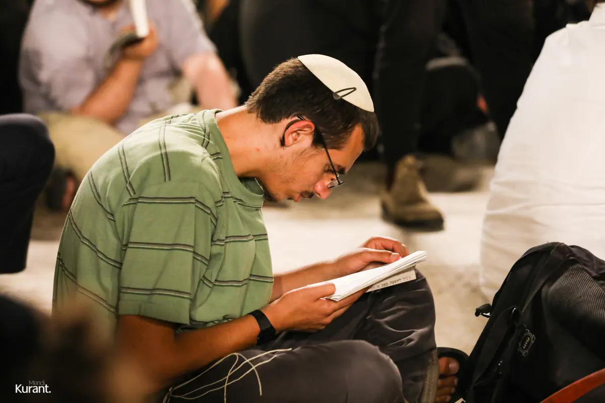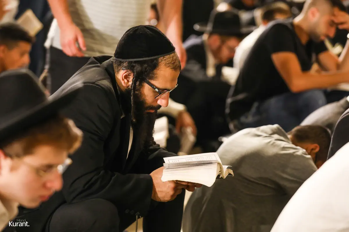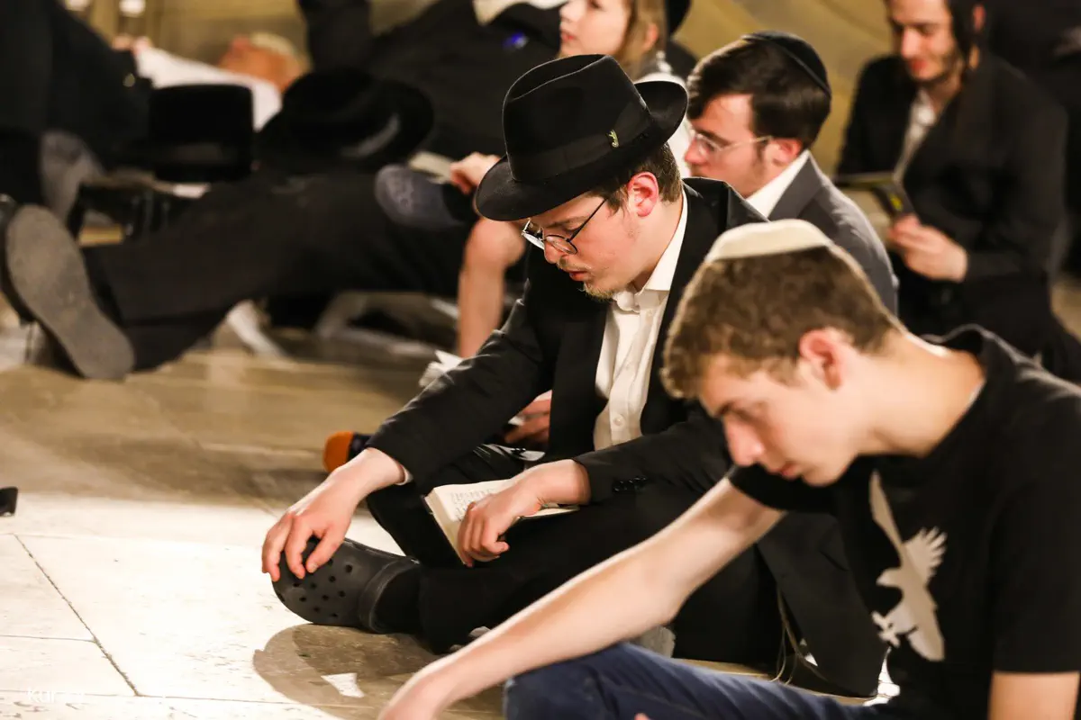 אלפי אנשים מכל רחבי הארץ הגיעו אמש לכותל המערבי לאמירת מגילת איכה וקינות. הצלם החב"די מענדי קורנט מגיש 50 רגעים מליל תשעה באב: