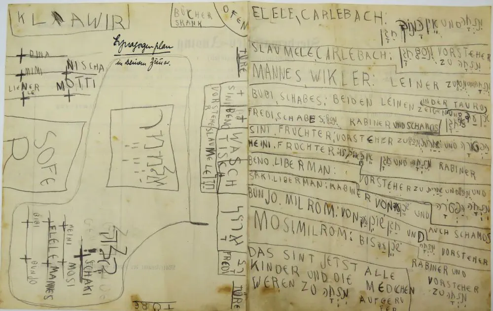 התוכנייה כתובה בעברית וגרמנית והיא מתארת סדר תפלה דמיונית עם ציור בית הכנסת בבאדן ורשימת כיבודים. החזן למוסף ''שלמלה', ותאומו אלי'לה (הרב אליהו חיים) מכובד עם אין כמוך. עוד שמות של בני המשפחה וילדים עם הרבה כיבודים.