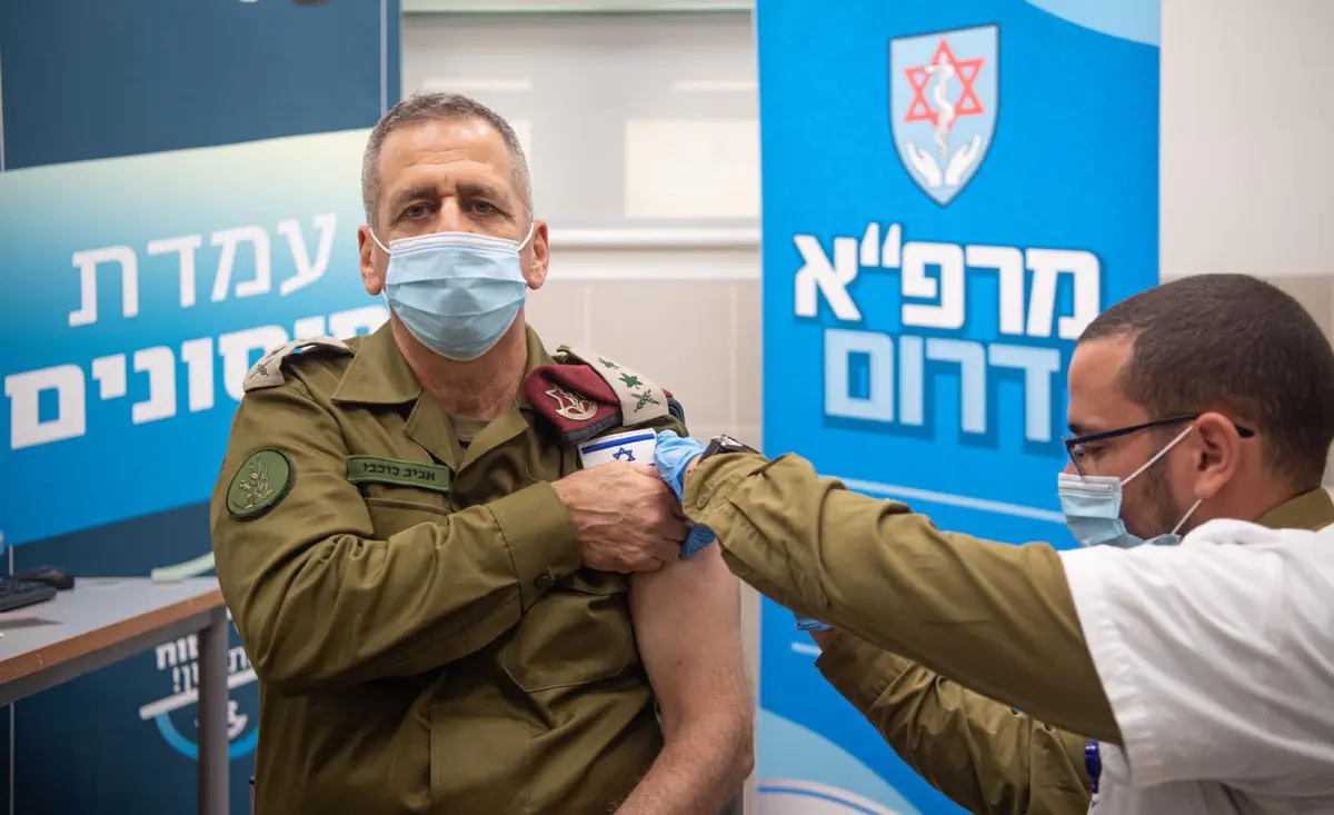 הרמטכ"ל רב-אלוף אביב כוכבי ביקר היום (שלישי) במתחם בו נארזות בדיקות הקורונה המהירות בקרית ההדרכה שבנגב וקיבל את החיסון השלישי לנגיף הקורונה.