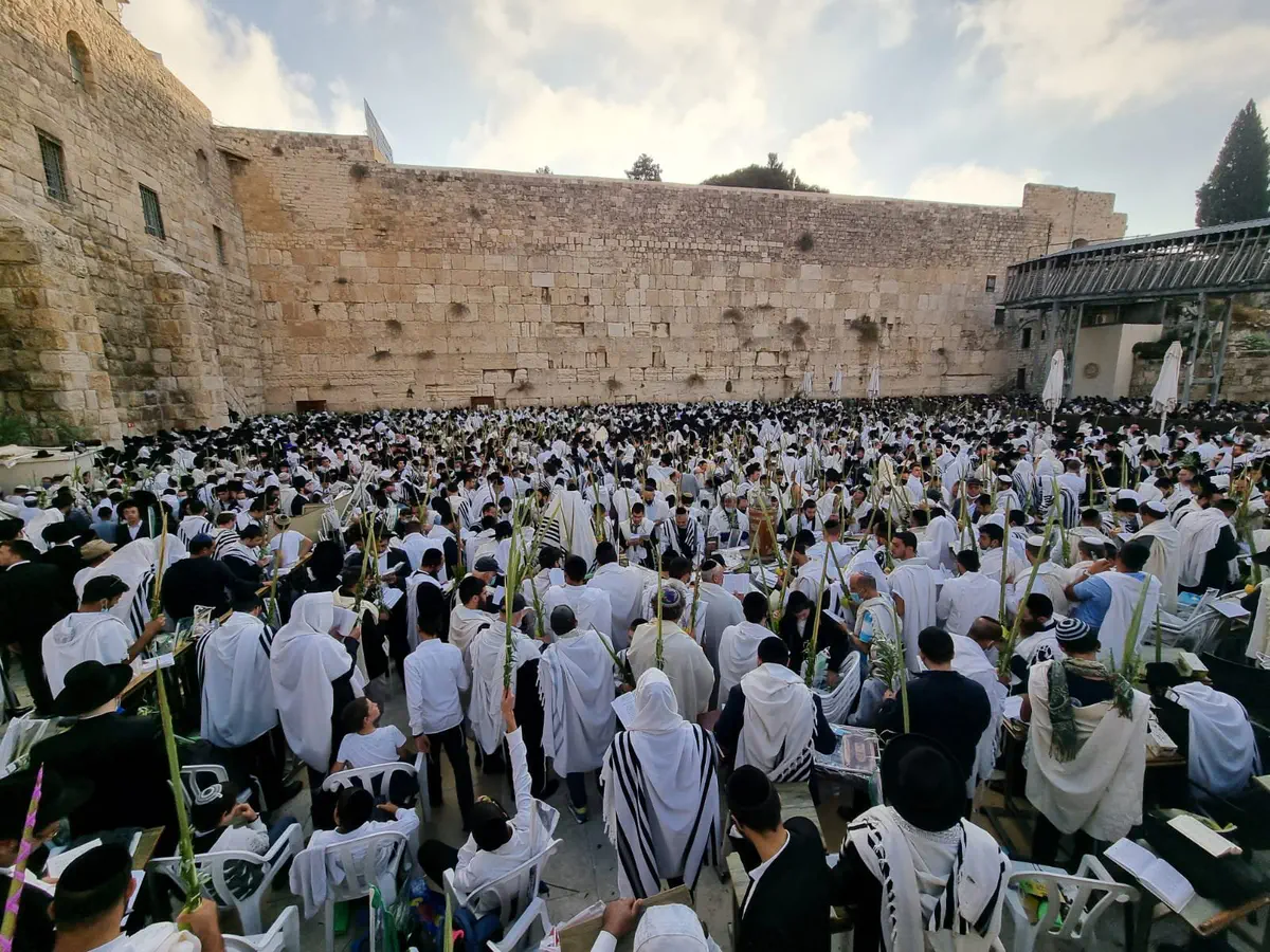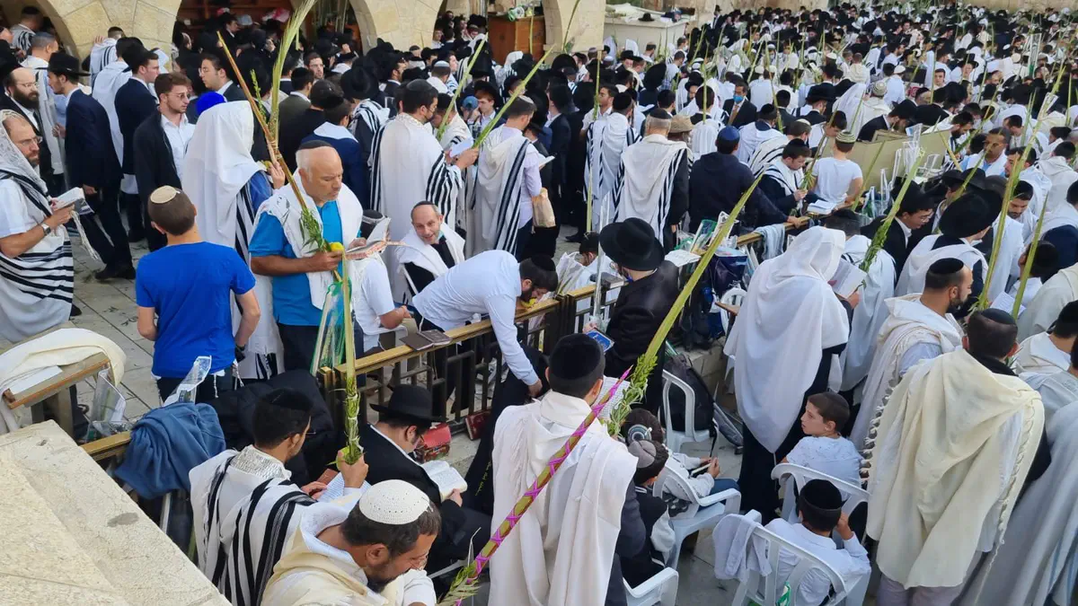 אלפי בני אדם משתתפים הבוקר (שני) בתפילות הושענא רבה בכותל המערבי המתקיימות על פי המתווה שאישרה הממשלה.