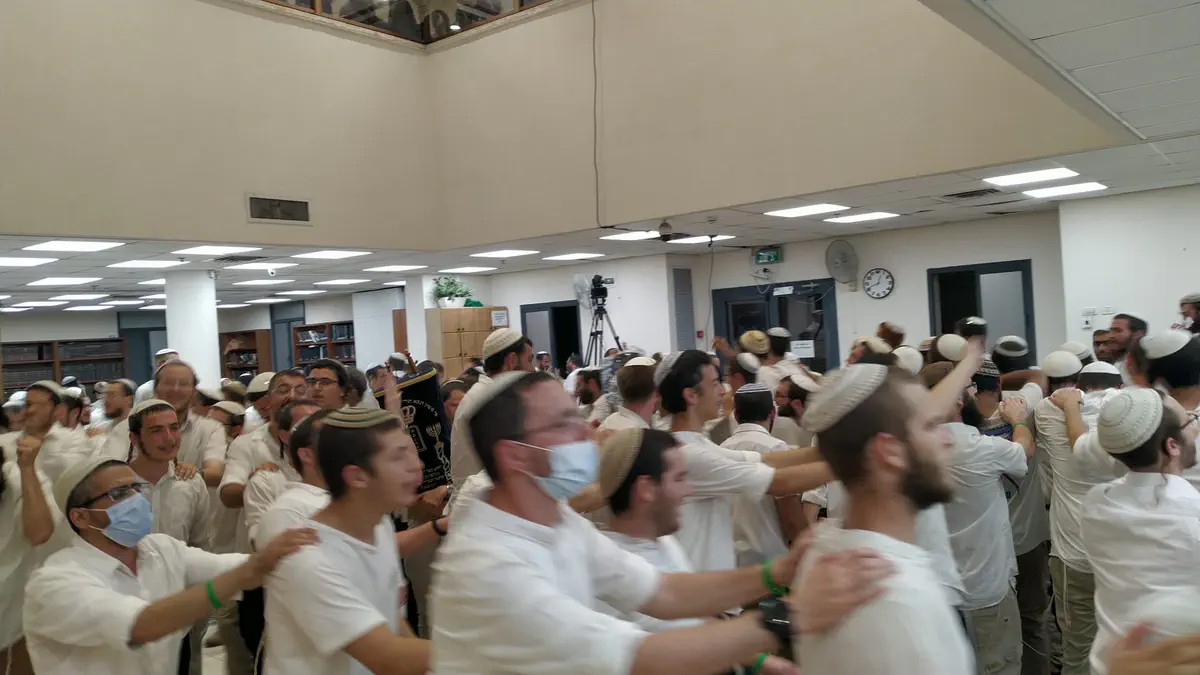 התלמידים שלוקחים חלק בהקפות השניות לומדים בקפסולה של תלמידי הישיבה ומחוסנים במנה השלישית של החיסון נגד קורונה.
