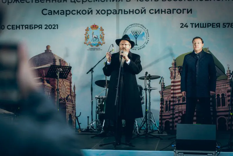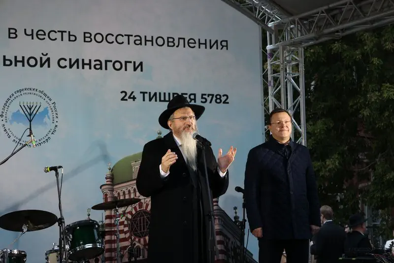 בטקס מרגש ורב רושם, בראשות רבה הראשי של רוסיה הרב ברל לזר, הונחה אבן הפינה לקראת התחלת השיפוצים שיימשכו כשנתיים, ובמהלכן ישוחזר אולם בית הכנסת ושאר חלקי הבניין, ויותאמו לצרכים ההולכים וגדלים של הקהילה היהודית, בחינוך, חסד ובכל תחומי החיים.