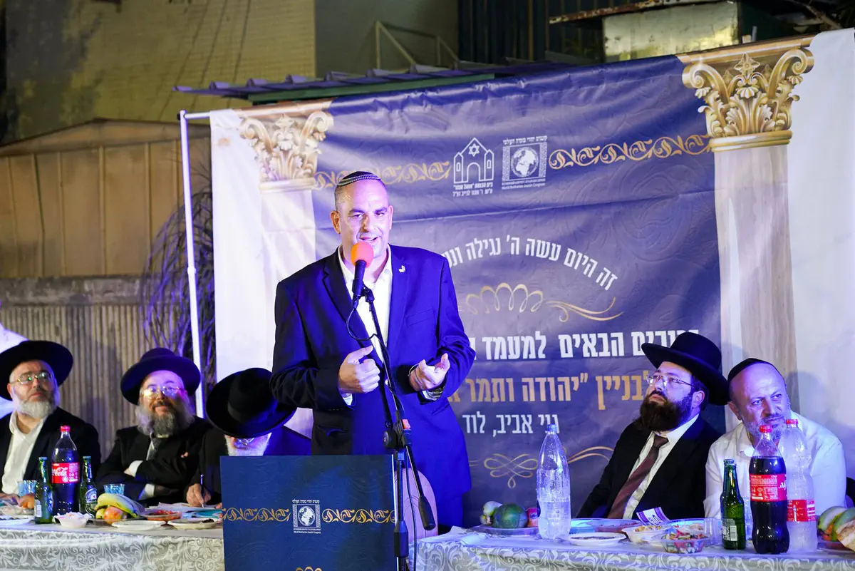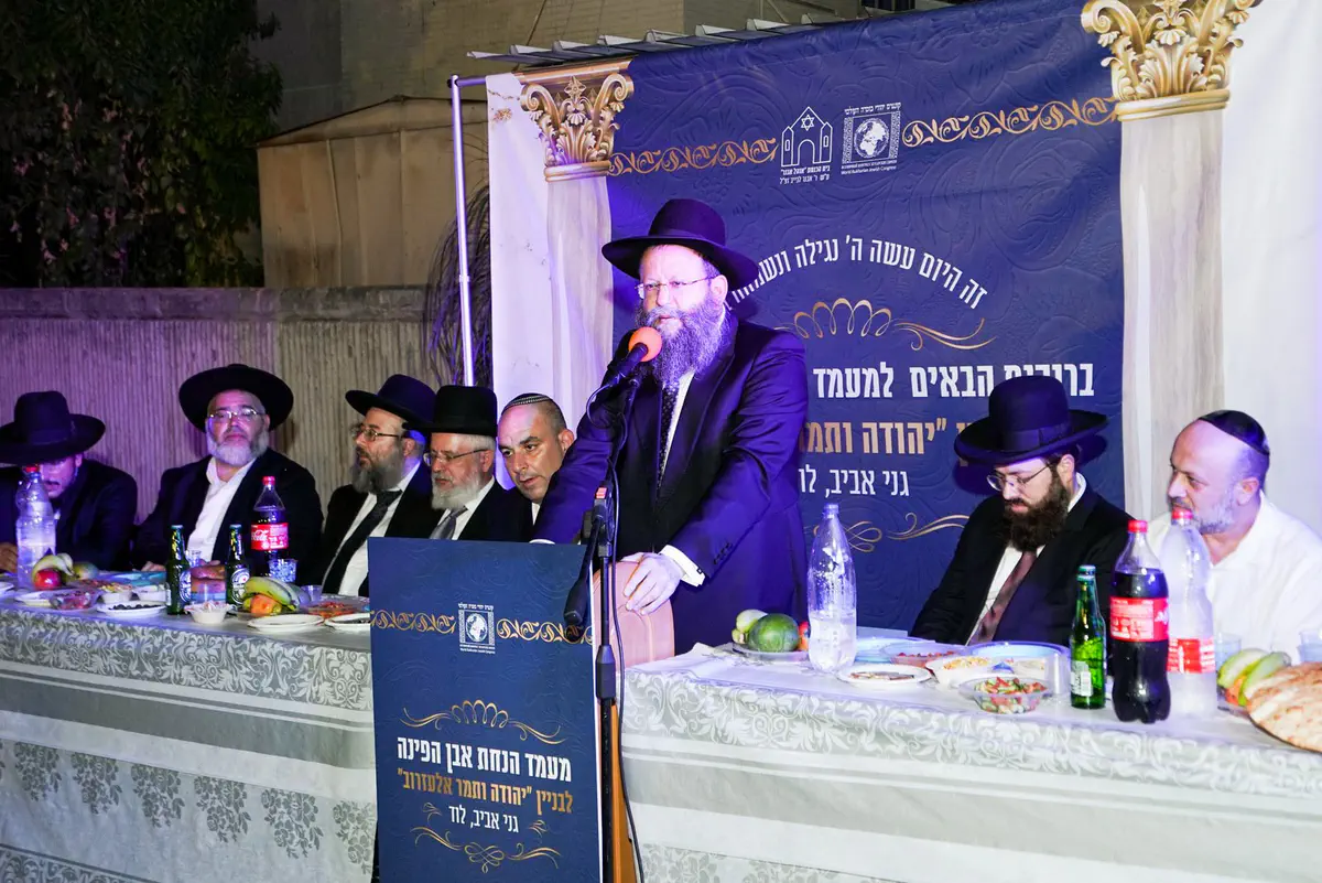 טקסט הנחת אבן הפינה לבית הכנסת 'יהודה ותמר אלעזרוב' בשכונת גני אביב בעיר לוד התקיים בתחילת השבוע.