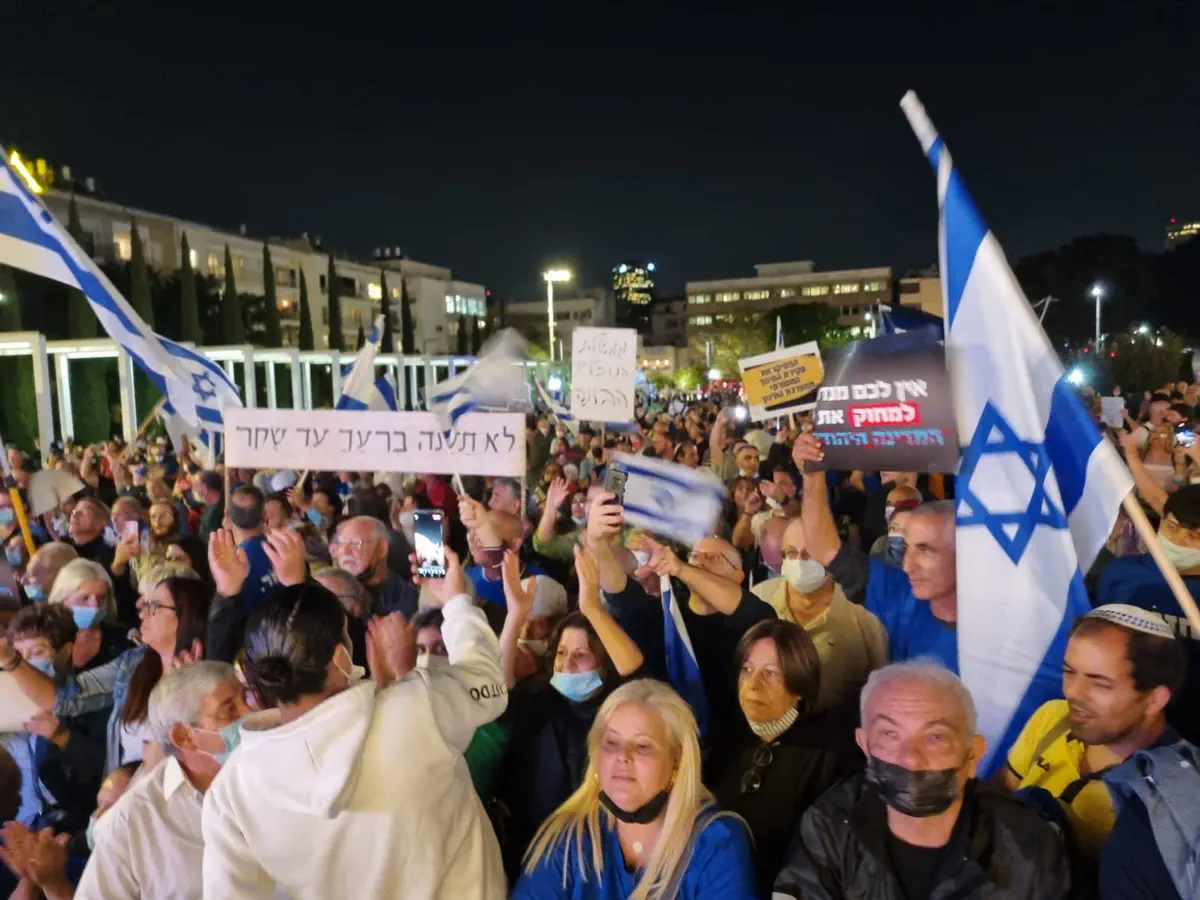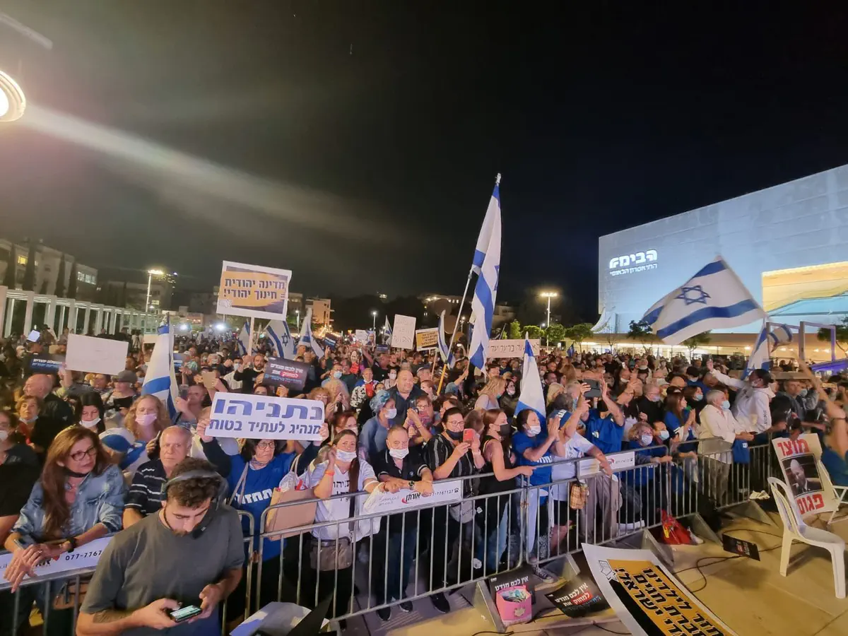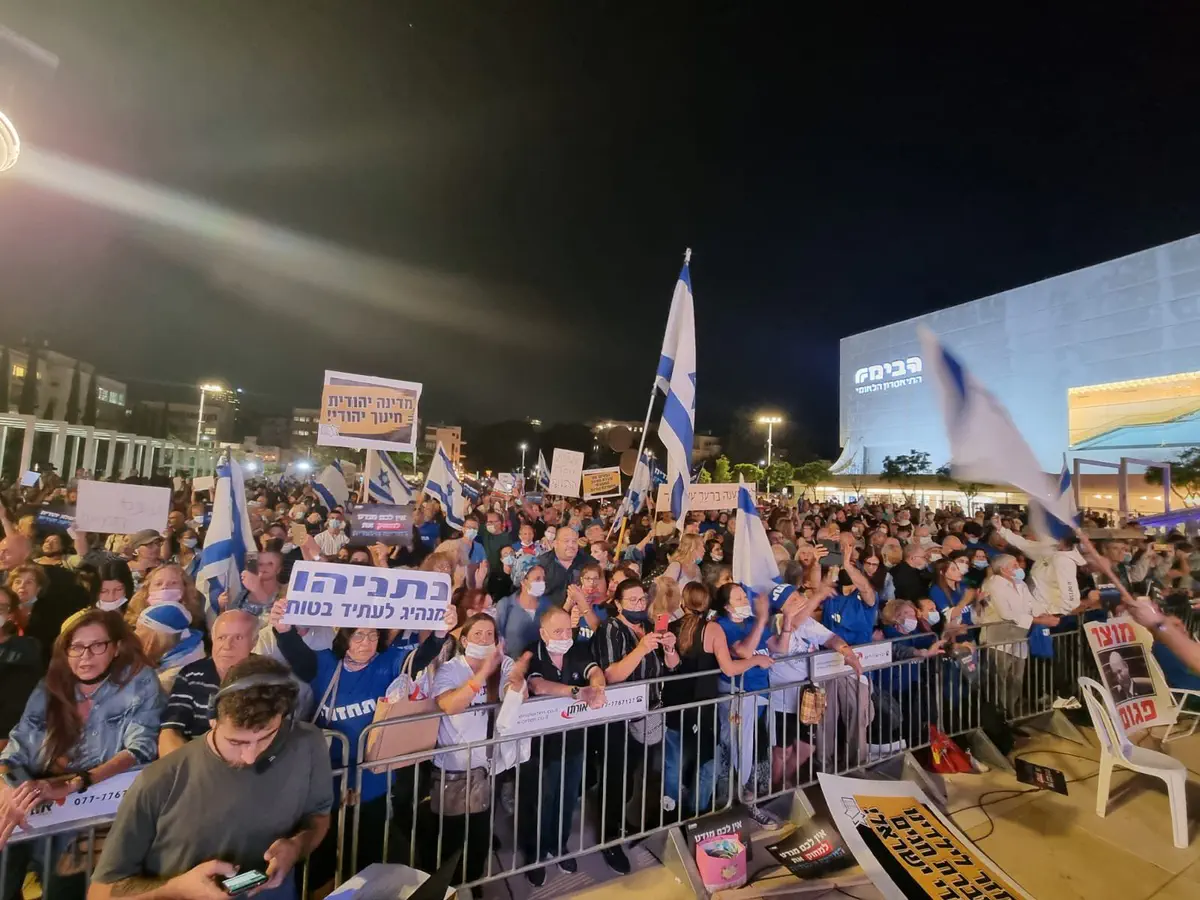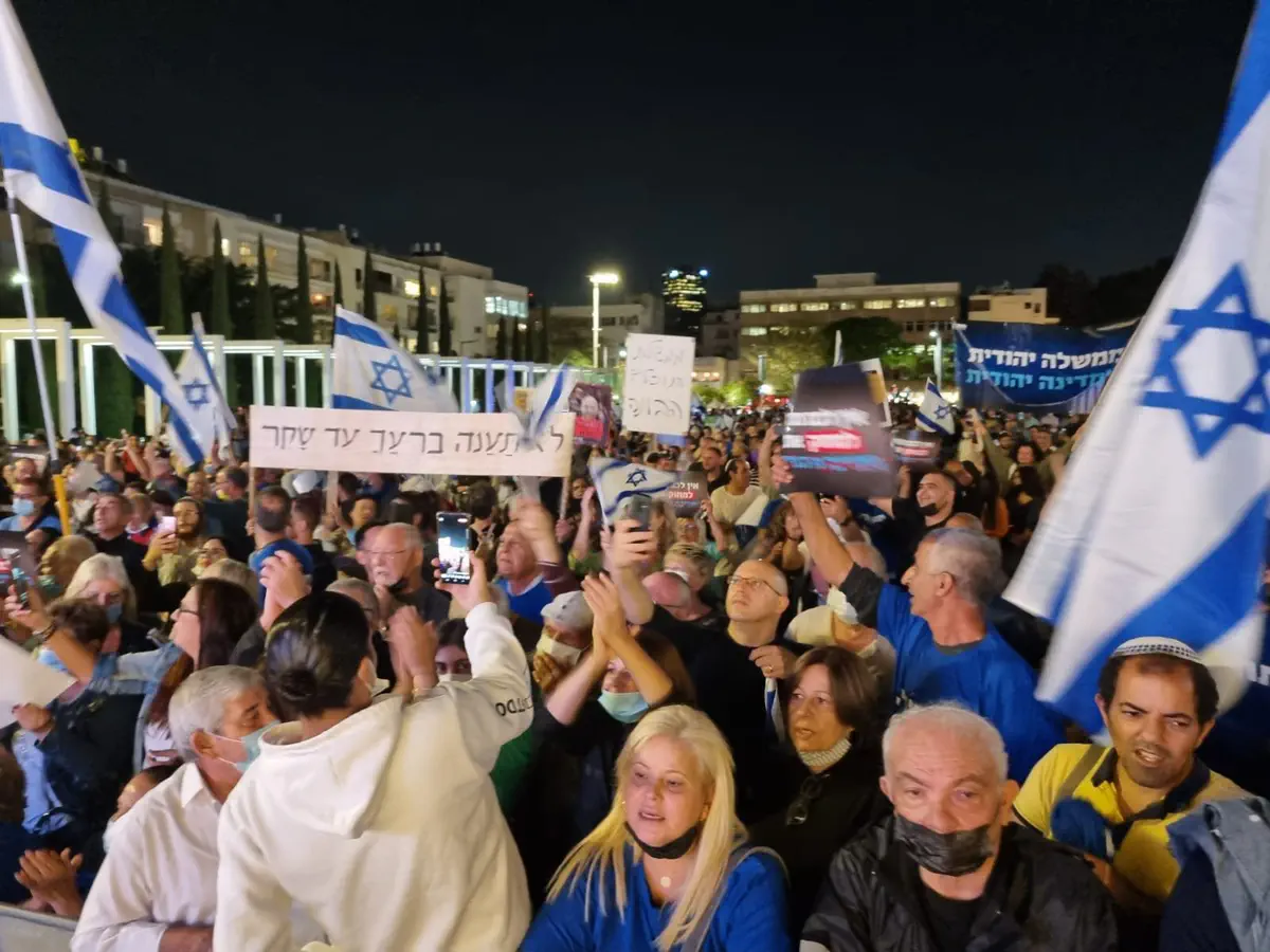 בכיכר הבימה משתתפים אלפי בני אדם בעצרת מחאה שמקיימות מפלגות האופוזיציה במחאה על מדיניות הממשלה.