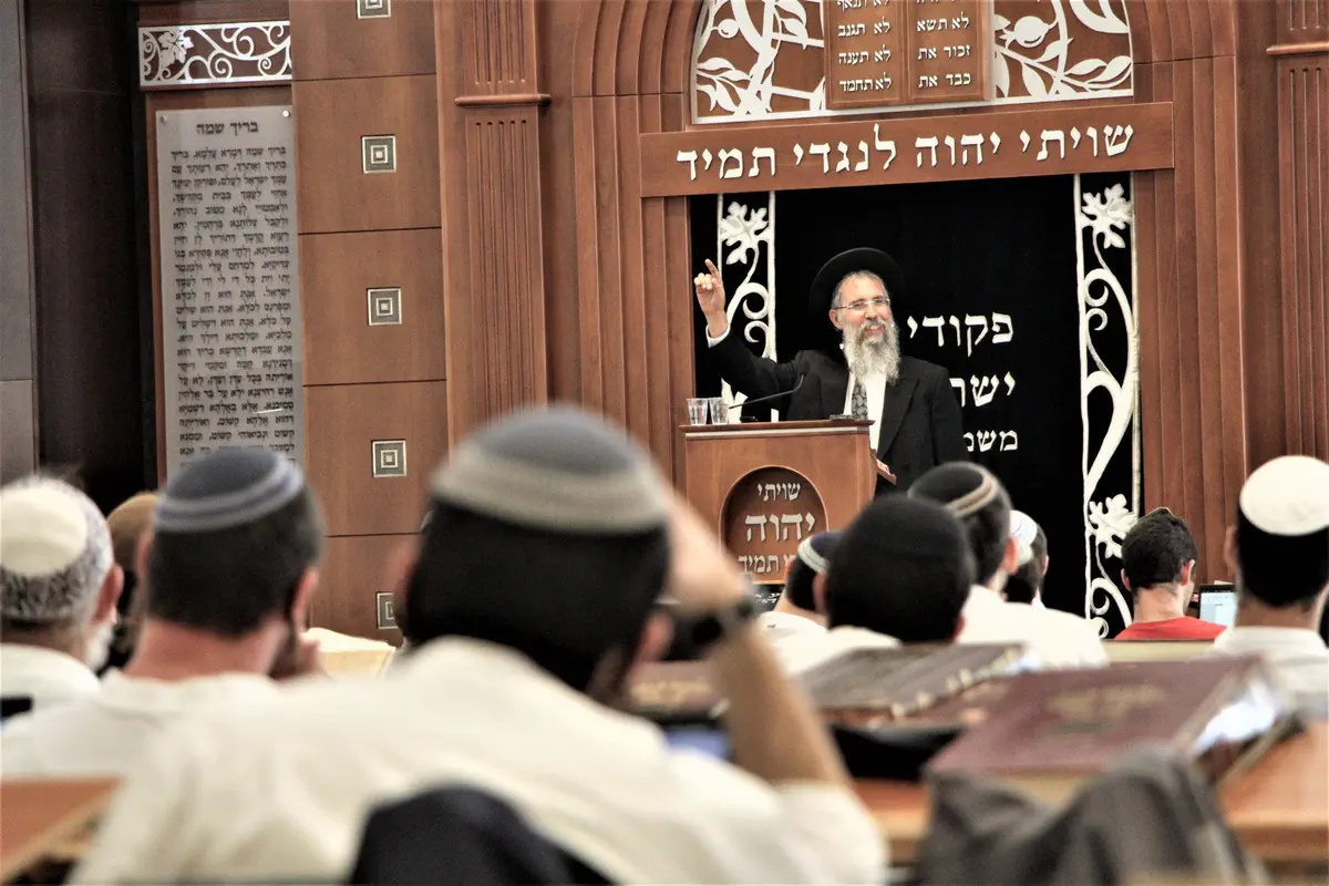 בסיום הכנס, עלו המשתתפים כולם, לבית המדרש של ישיבת בית אל אשר התמלא מפה לפה, לשמיעת שיעור מאת דיין בית הדין הגדול, הרב ציון לוז.
