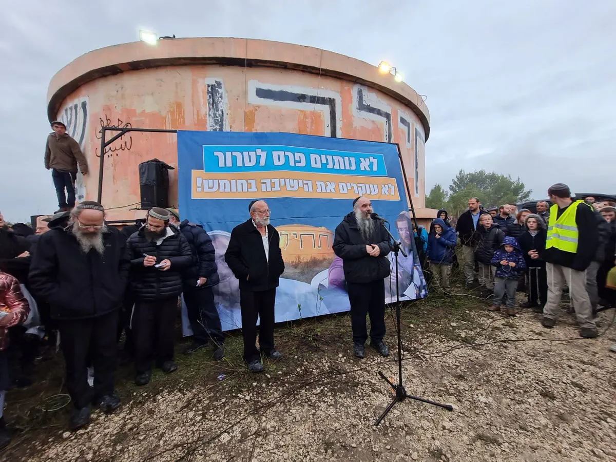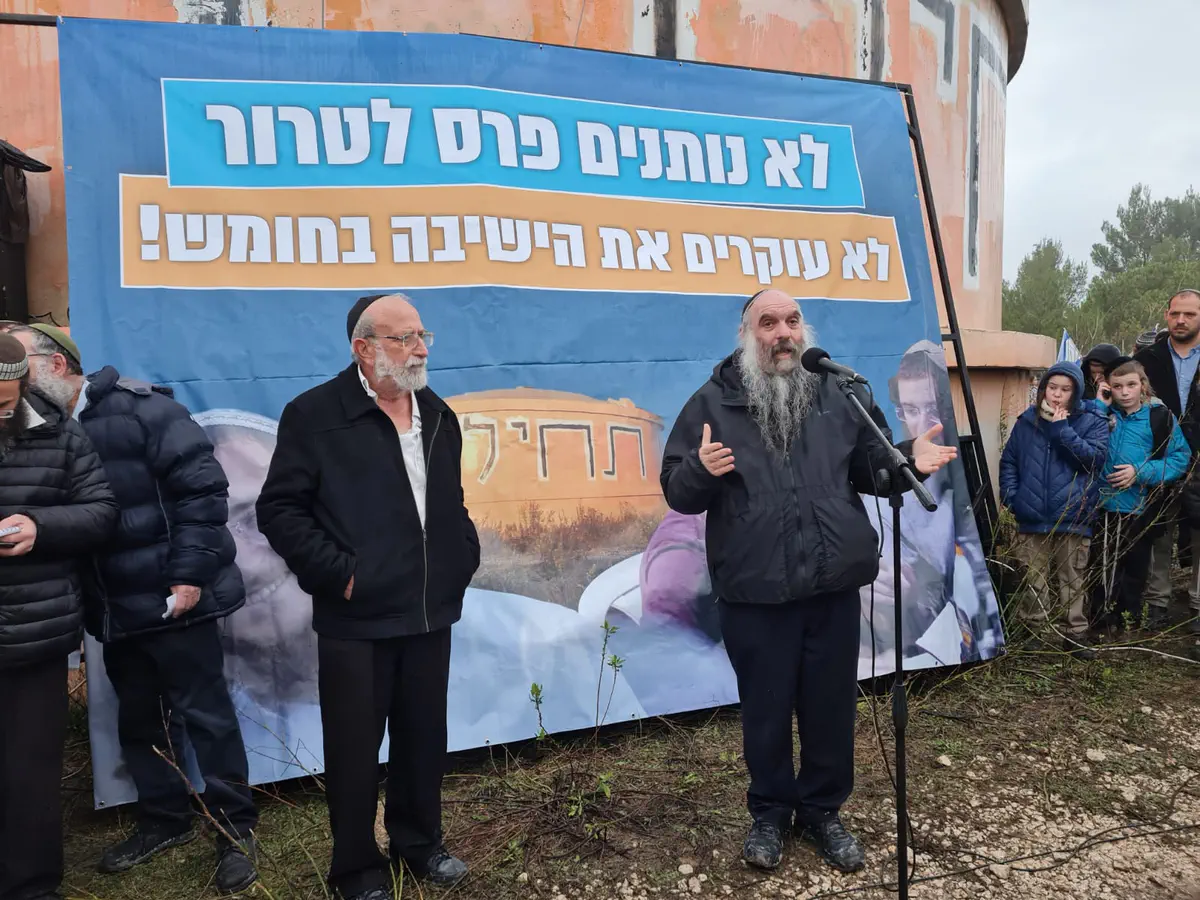 ראש הממשלה אתה אחראי על זה לטוב ולרע, אף אחד לא יוכל לברוח מזה, ישיבת חומש תבנה מחדש''.