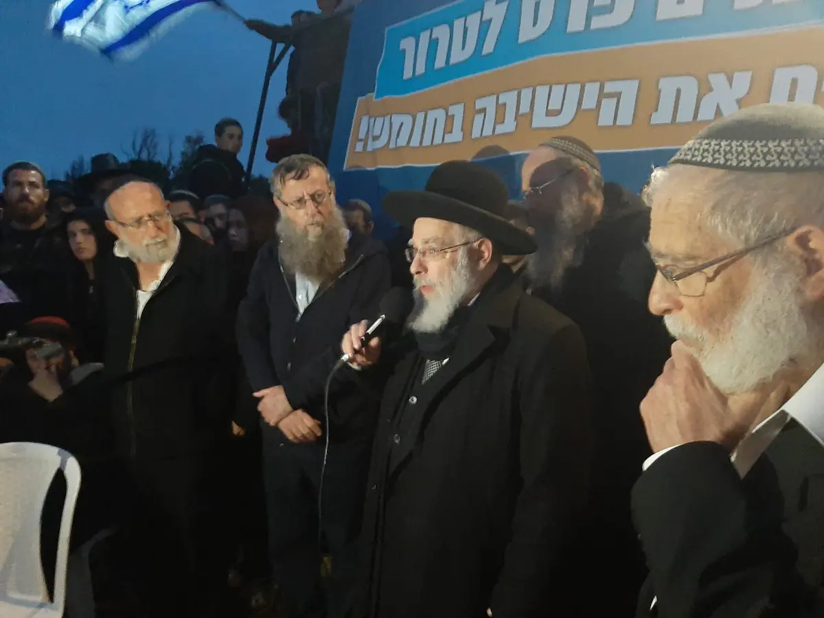 "אנחנו אומרים לכל הפוליטיקאים בירושלים וכל חברי הממשלה שרק השבוע הצטלמו חברים בקואליציה עם המחבל ראאד סאלח, ואנחנו מצפים לתשובה של אישור ישיבת חומש עוד היום. אנחנו, עם ישראל כולו, מתבייש שיש רצון וכוונה לא רק לא להסדיר את הישיבה אלא גם להוריד אותה מכאן ואנחנו הגענו לכאן יחד עם המשפחה שעלתה לכאן ישר מאזכרת השבעה, להגיע למקום הרצח, להתחזק ביחד ולהצדיע לחלוצים של ישיבת חומש בראשות הרב אלישמע כהן''.