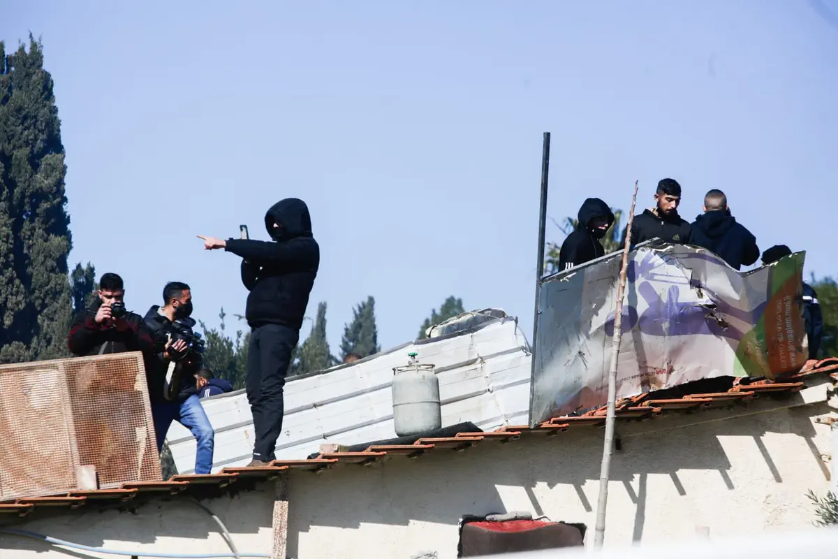 עם הגעת נציגי העירייה וההוצאה לפועל בליווי כוחות משטרה, החלו מספר צעירים להתבצר על בית מגורים עם בלון גז וחומר דליק והבעירו במקום מזרונים.