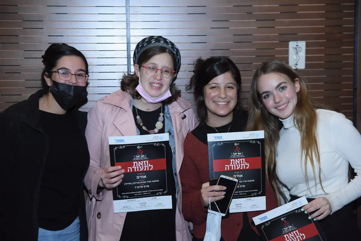 פרס ערוץ 7 על שם אדיר זיק ז"ל הוענק השנה לתלמידות מגמת אולפנת אורות מודיעין על הסרט "אחים".