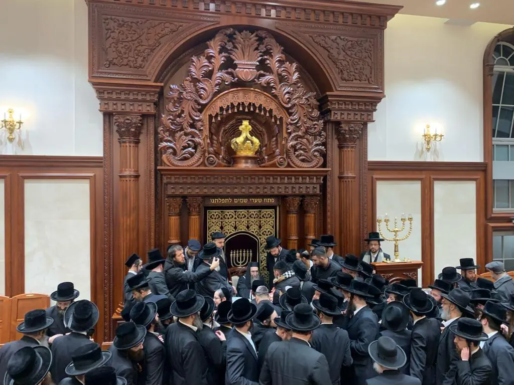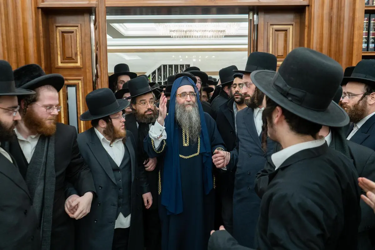 אמש התקיים שיעור מרכזי בבית המדרש של חסידות בעלזא בבירה הבריטית. לאחר השיעור, מאות חסידים עברו לפניו לברכה ועצה וקיבלו מידיו מטבע לשמירה והצלחה.