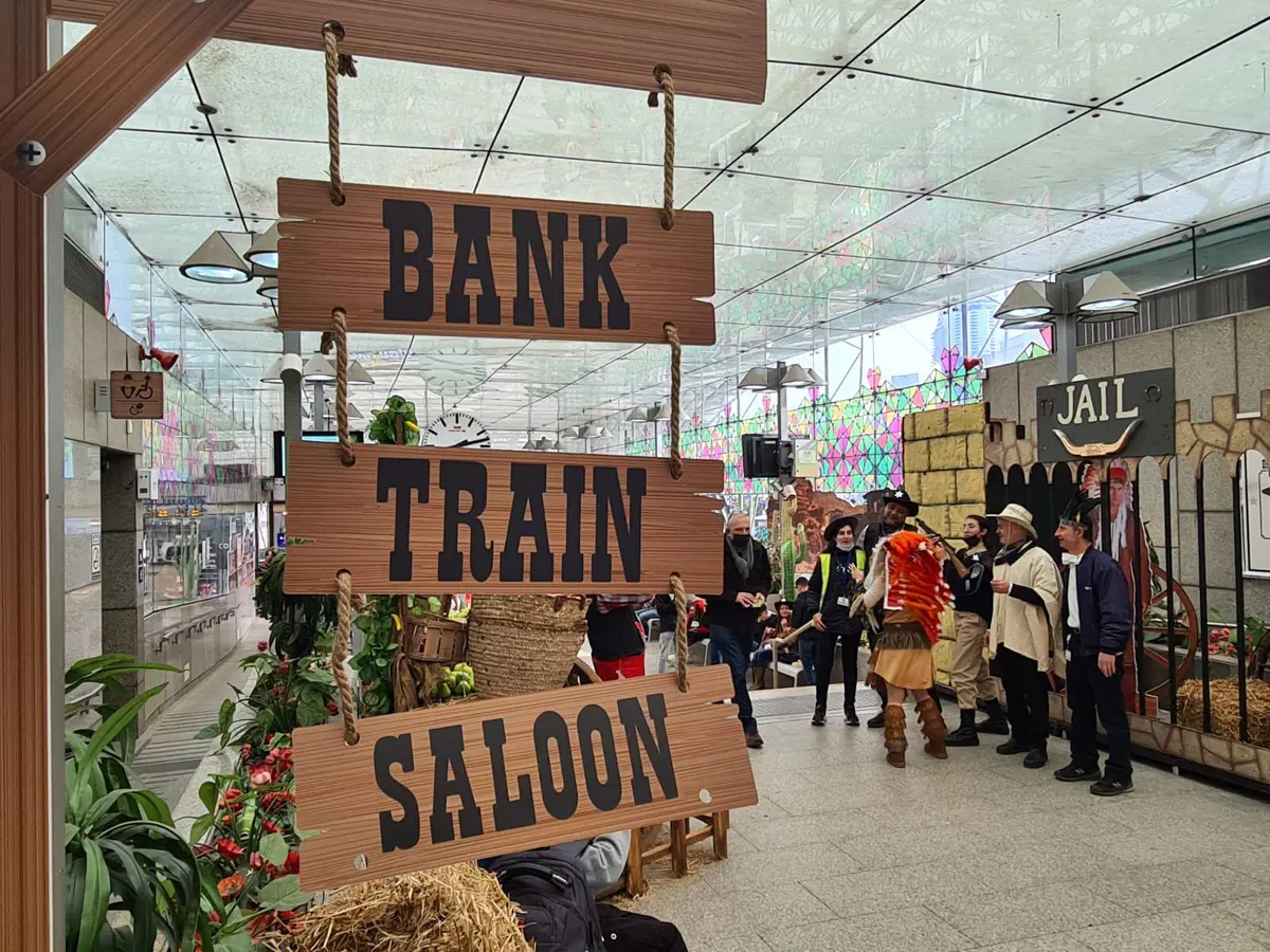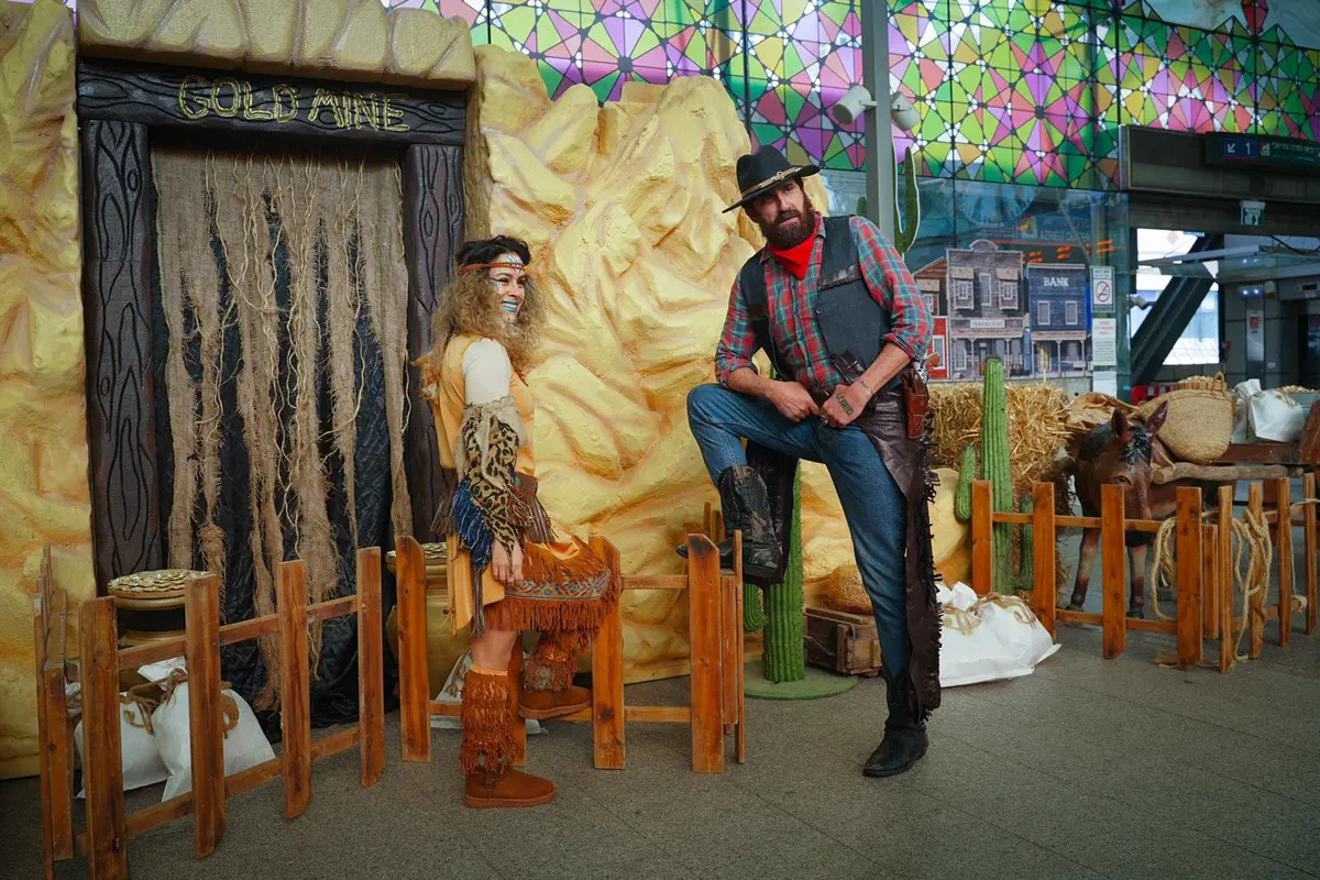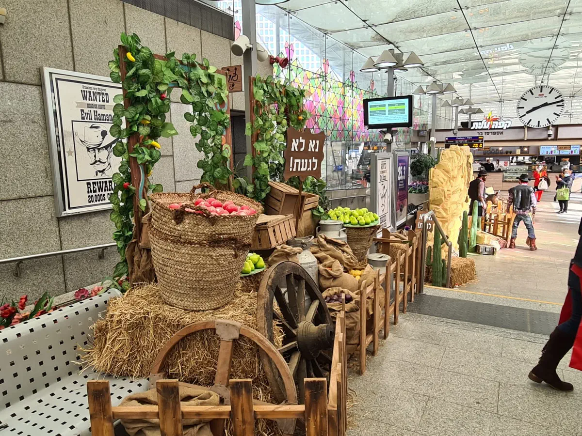 השנה, עם סיום הגבלות הקורונה, החליטה תחנת תל אביב השלום שגם היא רוצה להתחפש, עמלה רבות במהלך כל הלילה בין רביעי לחמישי, והבוקר (חמישי) הפתיעה את הנוסעים כשהפכה לסט של סרט מהמערב הפרוע.