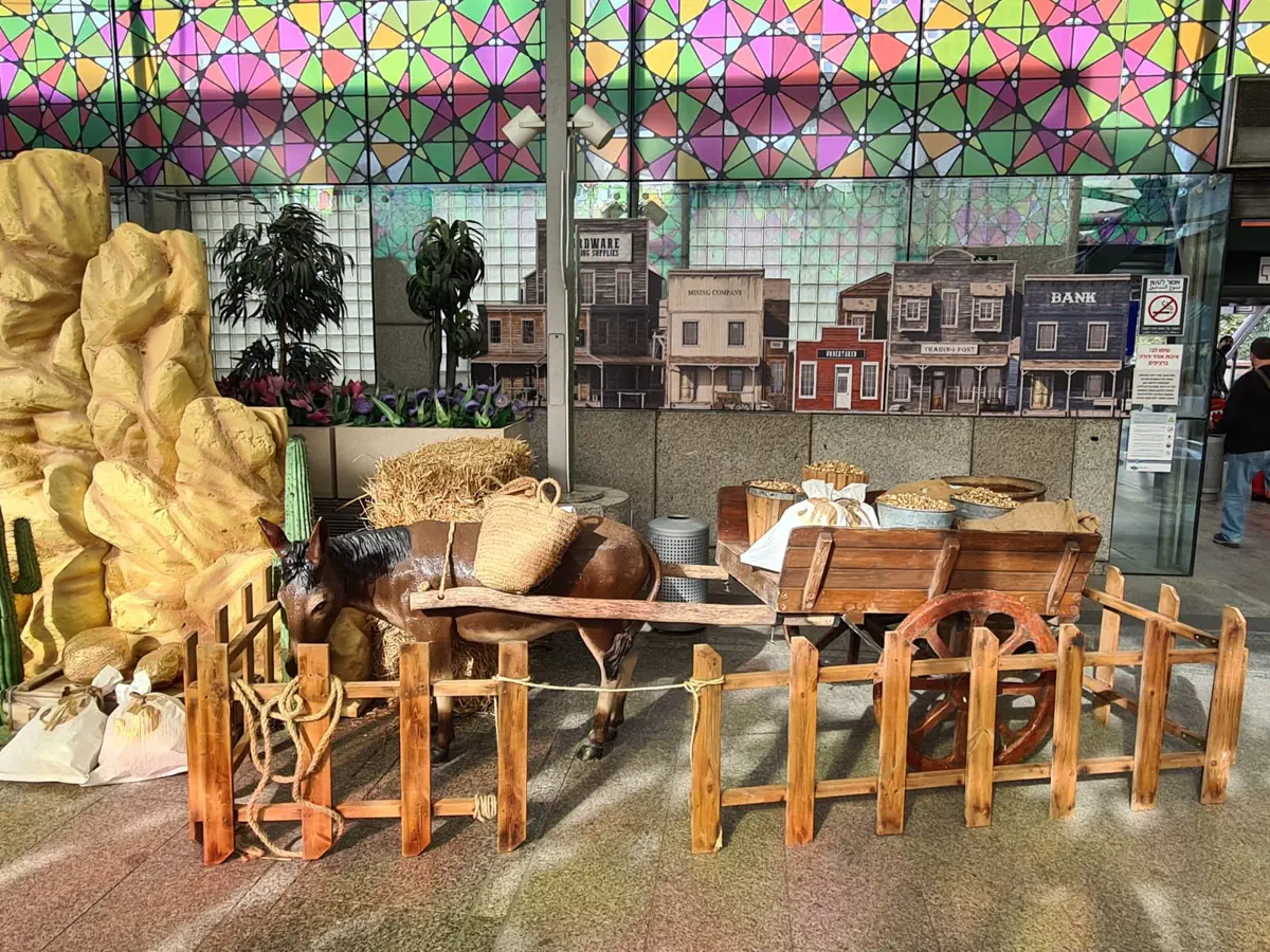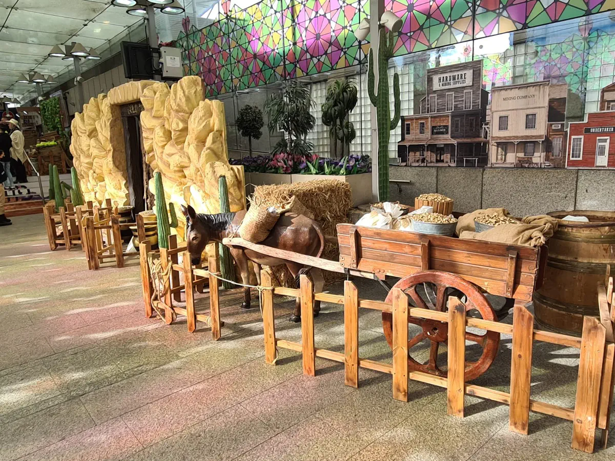 מתקני התחנה הרגילים שינו את פניהם בהתאם: עמדת הרב קו הפכה לבית מעצר מהמאה ה-19, משרד מנהל התחנה הפך למשרדו של השריף, קופות התחנה לסניף בנק, ואולם ההמתנה הפך לרחוב הראשי של העיירה בו פוזרו אלמנטים מהמערב הפרוע כגון חנויות, שלטים, חביות, חבילות חציר ולוחות מודעות.
