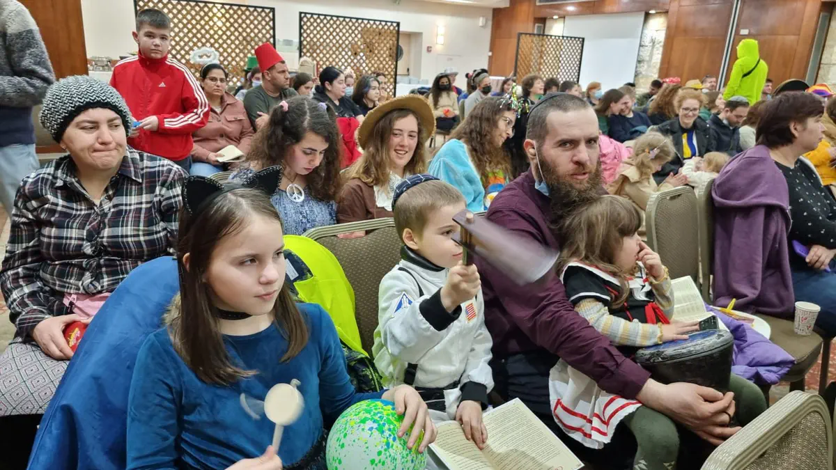 עולים מאוקראינה, שרק בימים האחרונים הצליחו לברוח מאזורי הלחימה ולהגיע לישראל, השתתפו הערב (חמישי) בחגיגת פורים ראשונה בישראל.