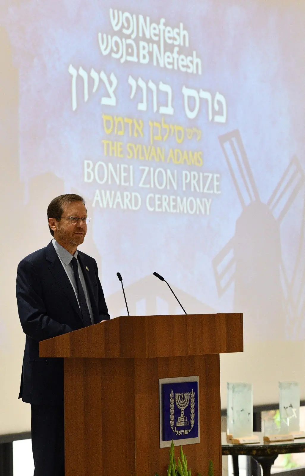 נשיא המדינה יצחק הרצוג אירח היום (ב') את טקס הענקת פרס בוני ציון של ארגון נפש בנפש ע"ש סילבן אדמס.