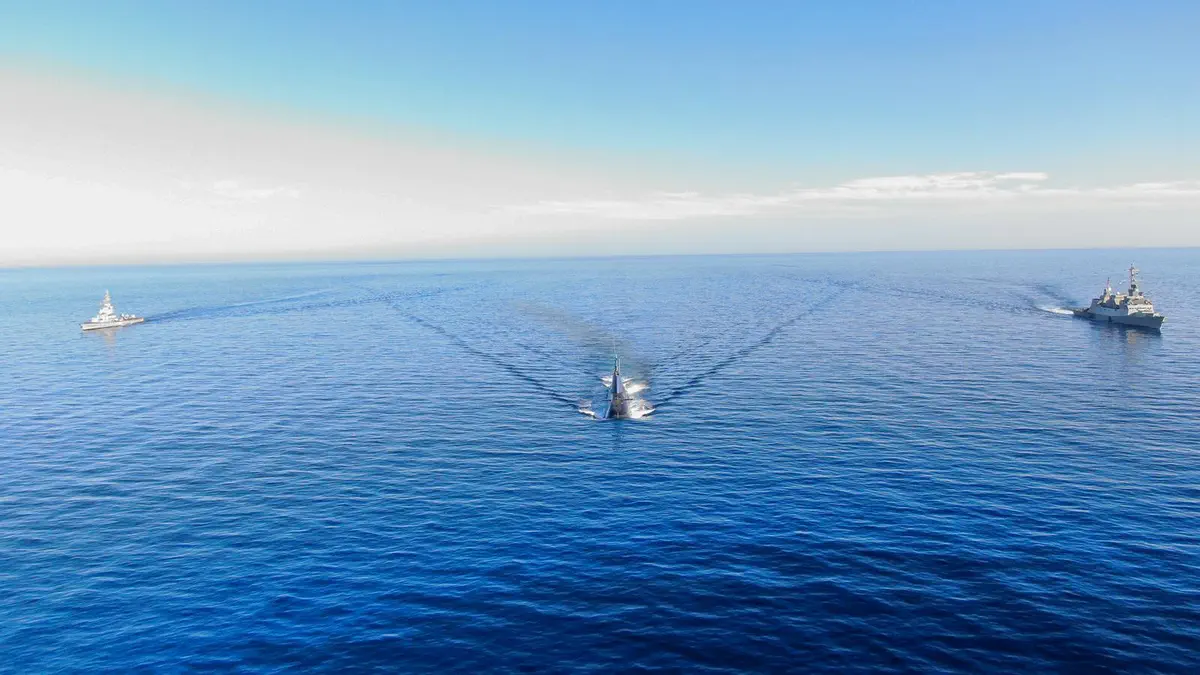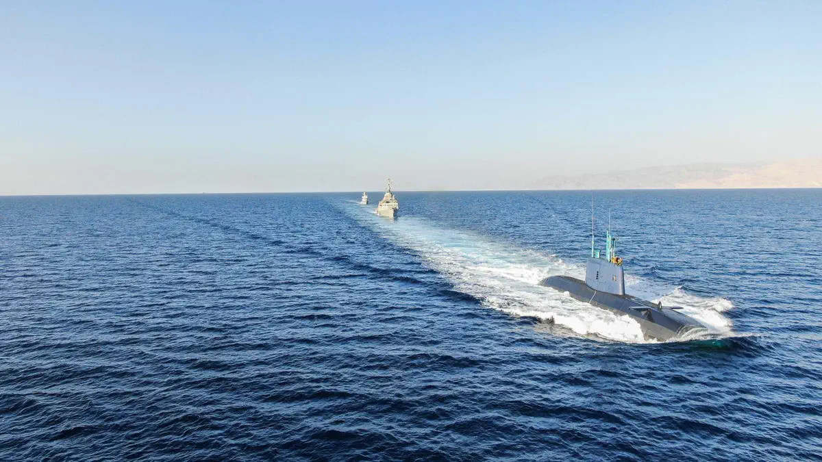 במסגרת תרגיל 'מרכבות האש', צוללת אח"י תקומה מדגם 'דולפין' לוותה על ידי ספינת הטילים מדגם סער 5 אח"י אילת וספינת הטילים מדגם סער 4.5 אח"י חץ בים האדום.