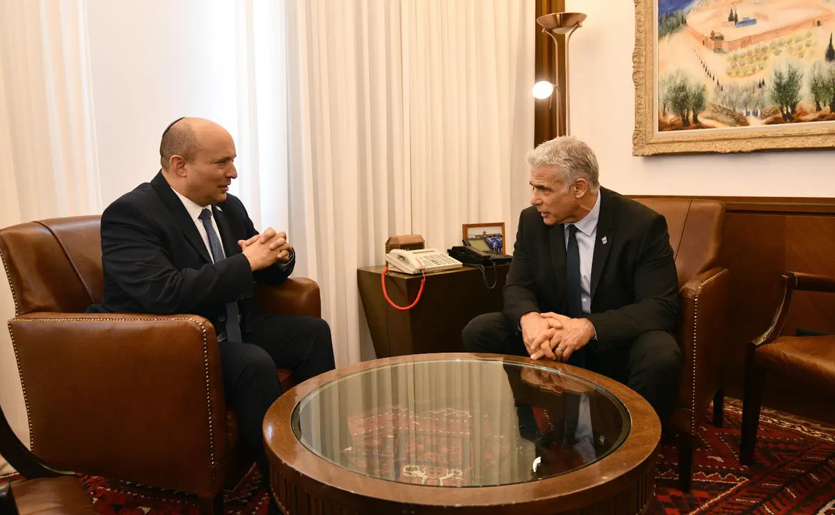 בהמשך התקיימה פגישת חפיפה בין בנט ולפיד במסגרתה העביר ראש הממשלה היוצא את עיקרי הסוגיות הביטחוניות והמדיניות של מדינת ישראל.